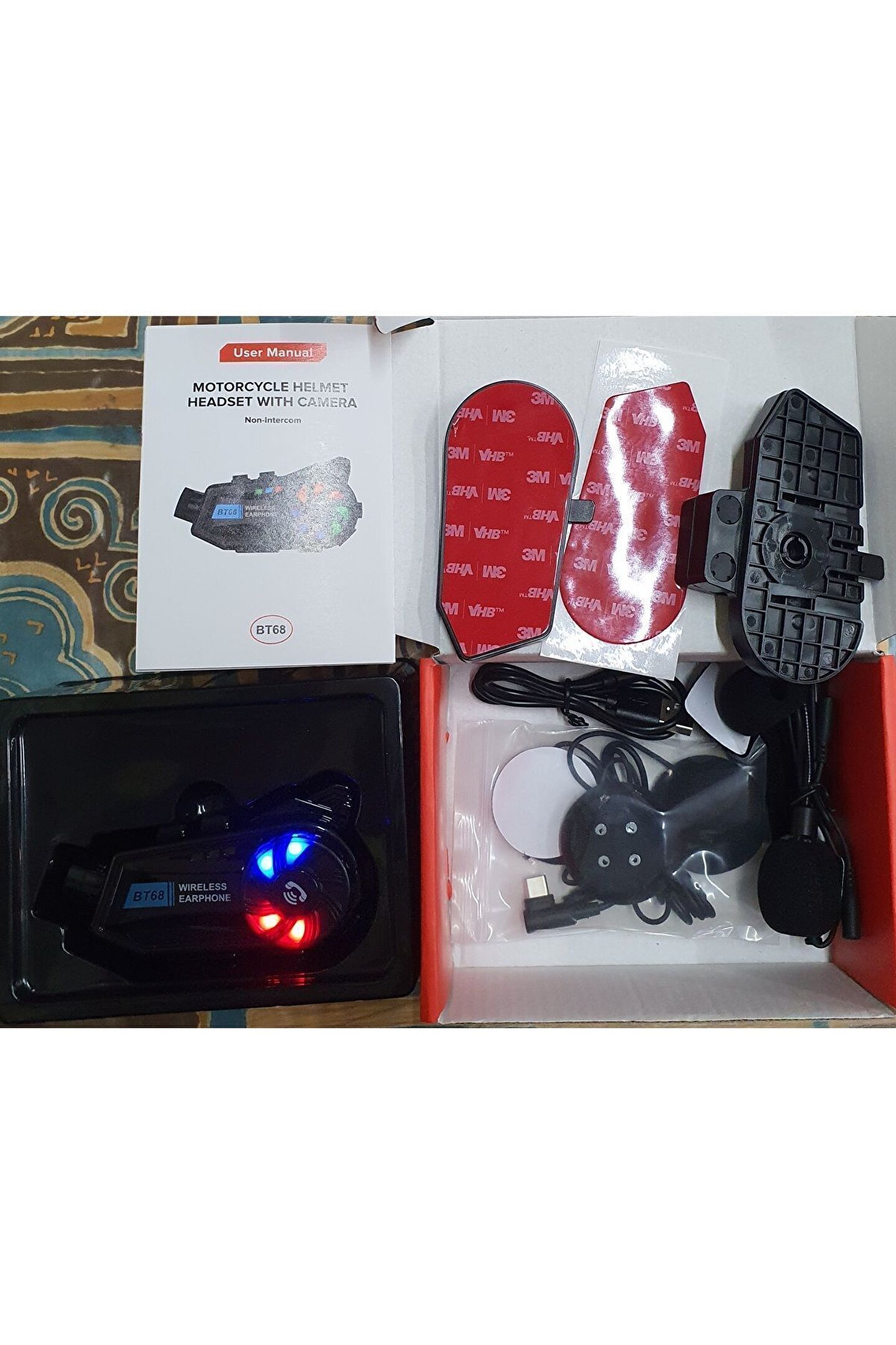 DİKKAT : CİHAZ KURULUMU; ŞARJ ETTİKTEN SONRA AÇMA TUŞUNA UZUN BASILI TUTUN KIRMIZI MAVİ IŞIK YANIP SÖNMEYE BAŞLAYINCA BLUETOOTH İLE TELEFONA BAĞLANABİLİRSİNİZ.; GOLOOK UYGULAMASINI TELEFONUNUZA İNDİRİN KAMERA TUŞUNA BASTIGINIZDA WİFİ AÇILIR TELEFONUNUZUN WİFİ AYAR KISMINDAN HİDVR_.; YAZAN BAĞLANTIYA BAĞLANIN ŞİFRE 12345678 DİR.; HAFIZA KARTI TAKIP KULLANILABİLİR.; TELEFON UYGULAMASI ÜZERİNDEN İZLENEBİLİR KAYITLAR TELEFONA İNDİRİLEBİLİR.; CİHAZIN KENDİNDE MİKROFON VARDIR SES VE GÖRÜNTÜ KAYDI YAPAR AYNI ANDA KAMERA TUŞUNA ÇİFT TIKLADIGINIZDA IŞIK MODLARI DEĞİŞİR.; BT68 Kameralı Motosiklet Bluetooth Kask Kulaklık ses kontrolü Dash kamera 1080P Video kayıt interkom Açıklama: Ürün adı: kask Bluetooth kulaklık Model: BT68 Bluetooth sürümü: 5.3 Pil kapasitesi: 1500mAh Bekleme süresi: 300 saat Çağrı süresi: 50 saat (kamera kayıt modu yaklaşık 6.5 saat) AI akıllı ses asistanı: evet Video kaydı: evet Fotoğraflar: evet Çözünürlük: 1960*1080P SD kart oynatma: evet (32-256G genişleme destekler) Gelen çağrıların otomatik cevaplanması için destek: evet Su geçirmez sınıf: IP65 Interkom fonksiyonu: hayır Uyumluluk: Android, iOS cep telefonu Daha fazla özellik: 360 derece rotasyon, 120 derece geniş açı, WIFI bağlantısı, APP, Uygulanabilir kask tipi: yarım kask, modüler, motokros, açık yüz, tam yüz, kask yukarı çevirmek, evrensel Özel fonksiyon: ses kontrolü, evrensel eşleştirme fonksiyonu, su geçirmez, gürültü azaltma Güç kaynağı modu: dahili pil Bağlantı modu: bluetooth