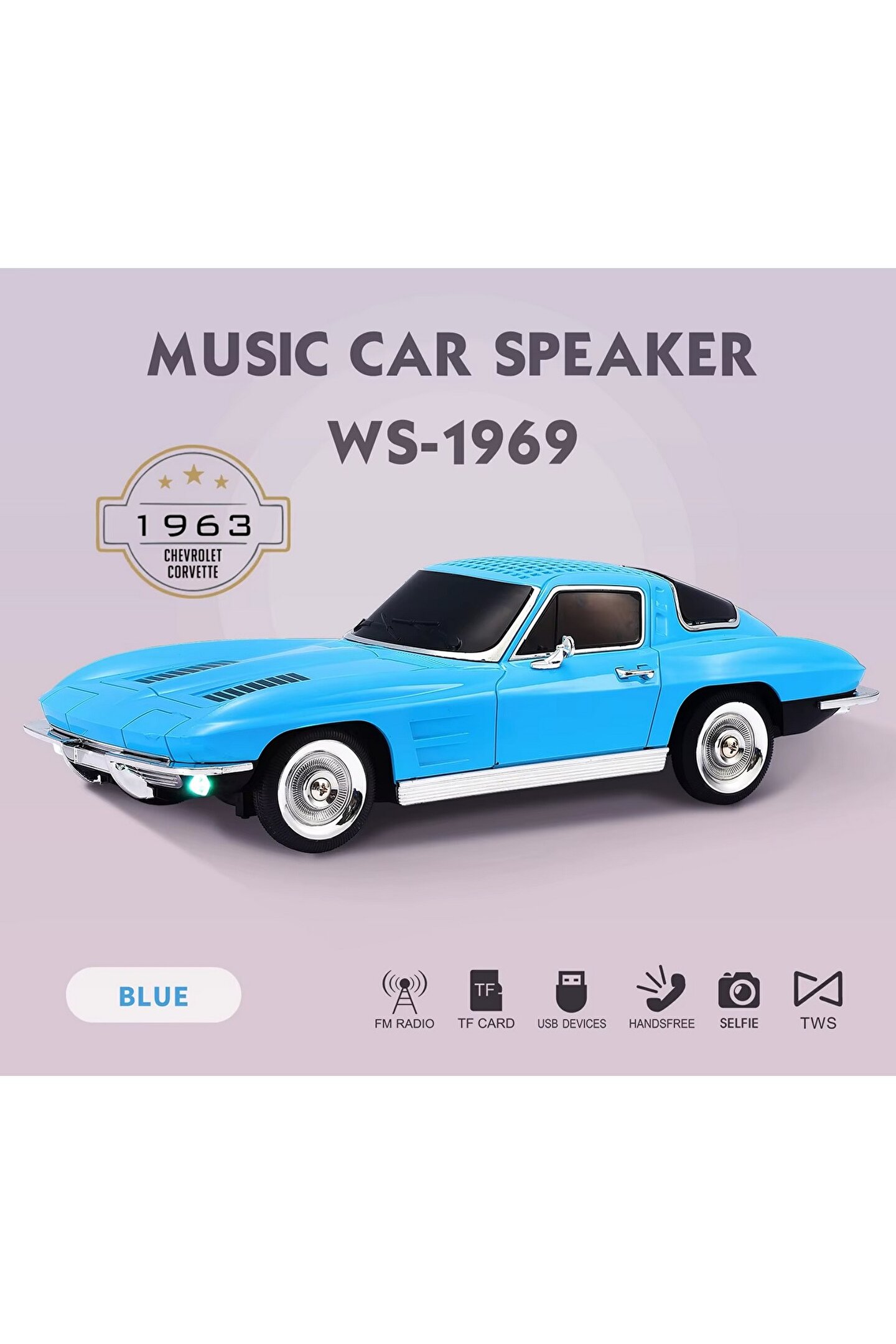 CHEVROLET NOSTALJİK ARABA BLUETOOTH SPEAKER ŞARJLI LED IŞIKLI KABLOSUZ HOPARLÖR FM SD KART USB