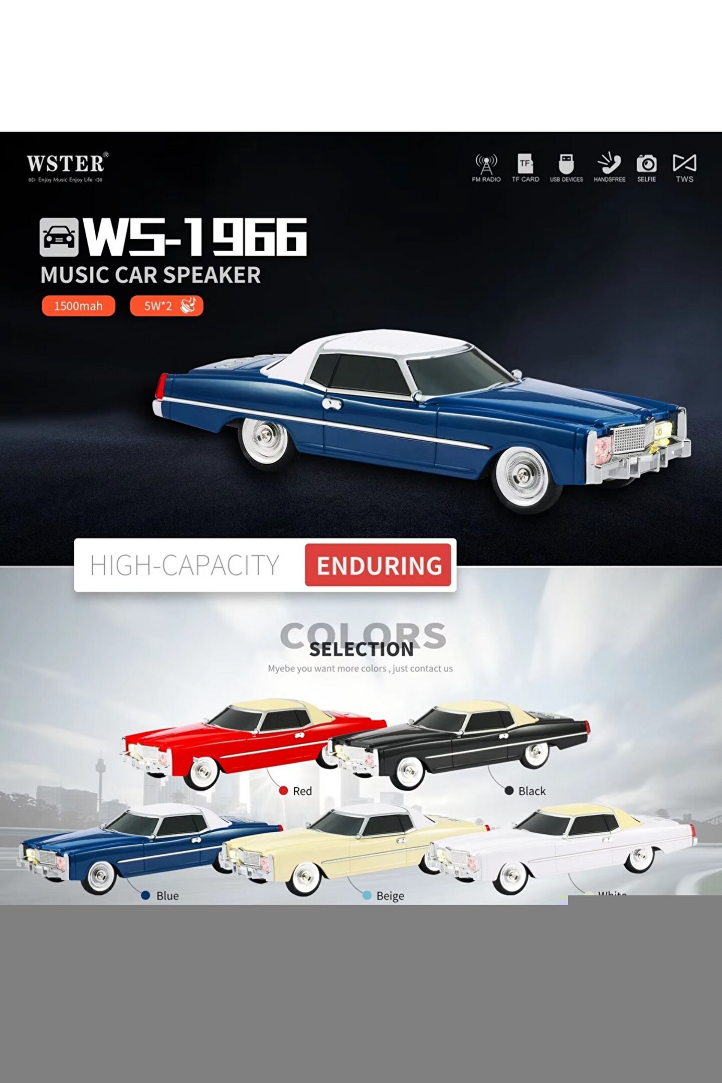 <div id="rich-content-wrapper"> <div> <ul> <li> <span>Ürün Boyutları : 26.5 x 7.6 x 10.7 cm</span> <br> </li> <li> <span>Coverzone WS-1969 Bluetooth Hoparlör: Klasik Tarzın Modern Dokunuşu Coverzone'un WS-1969 modeli, nostaljiyi ve modern teknolojiyi bir araya getirerek müzik deneyiminizi yeni bir seviyeye taşıyor. Bu klasik araba görünümlü Bluetooth hoparlör, estetik açıdan göz alıcı detaylarla donatılmıştır ve şıklıkla teknolojiyi bir araya getirir.</span> <br> </li> <li> <span>Estetik ve İşlevsellik Bir Arada: WS-1969'un şık tasarımı, 1969'un klasik araba modellerine özgü detayları içerir. İnce detaylarla bezenmiş kaplaması, metalik dokunuşları ve dikkat çekici renkleriyle her ortamda göz kamaştırır. Bu hoparlör, sadece dışarıdan değil aynı zamanda içeriden de güçlü bir performans sunar.</span> <br> </li> <li> <span>Gelişmiş Ses Teknolojisi: 57MM çapında, 4 ohm ve 5 watt gücünde olan hoparlörü, net ve zengin bir ses deneyimi sunmak için tasarlandı. Çift 5W çıkış gücü, odayı dolduran bir sesle müzik dinleme keyfini artırırken, Bluetooth bağlantısıyla kablosuz kullanım kolaylığı sağlar.</span> <br> </li> <li> <span>Taşınabilir ve Dayanıklı: WS-1969, kompakt tasarımı ve dayanıklı yapısıyla taşınabilirlik konusunda da öne çıkıyor. İster evde, ister açık havada veya seyahat halindeyken kullanın, her zaman kaliteli sesin keyfini çıkarın.</span> <br> </li> <li> <br> </li> </ul> <div> <br> </div> </div> </div>