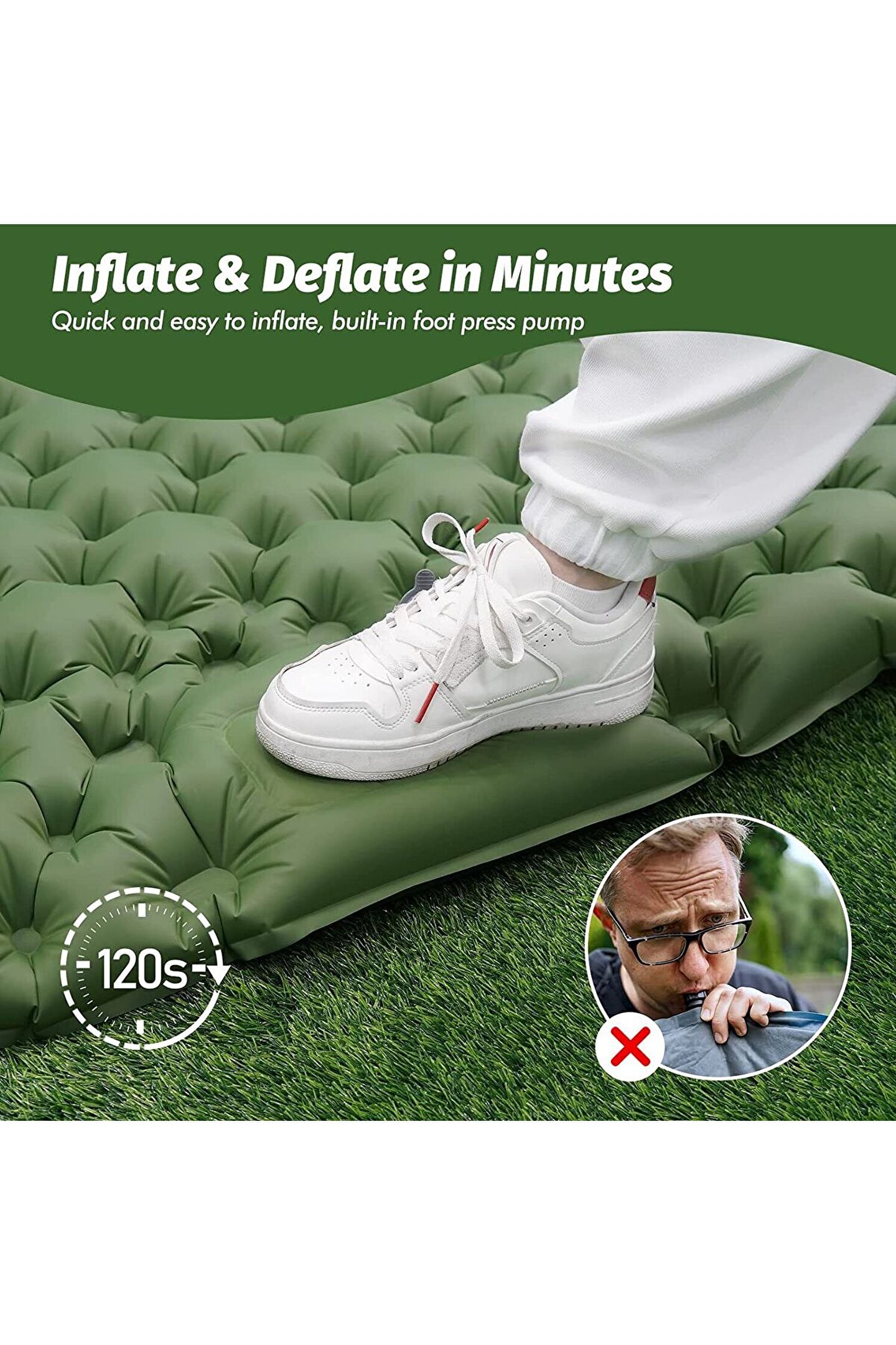 JUNGLEE ÇİFT KİŞİLİK ŞİŞME YATAK KAMP PLAJ ÇADIR YATAĞI UYKU PEDİ KENDİNDEN POMPALI CAMP SİNGLE BED
