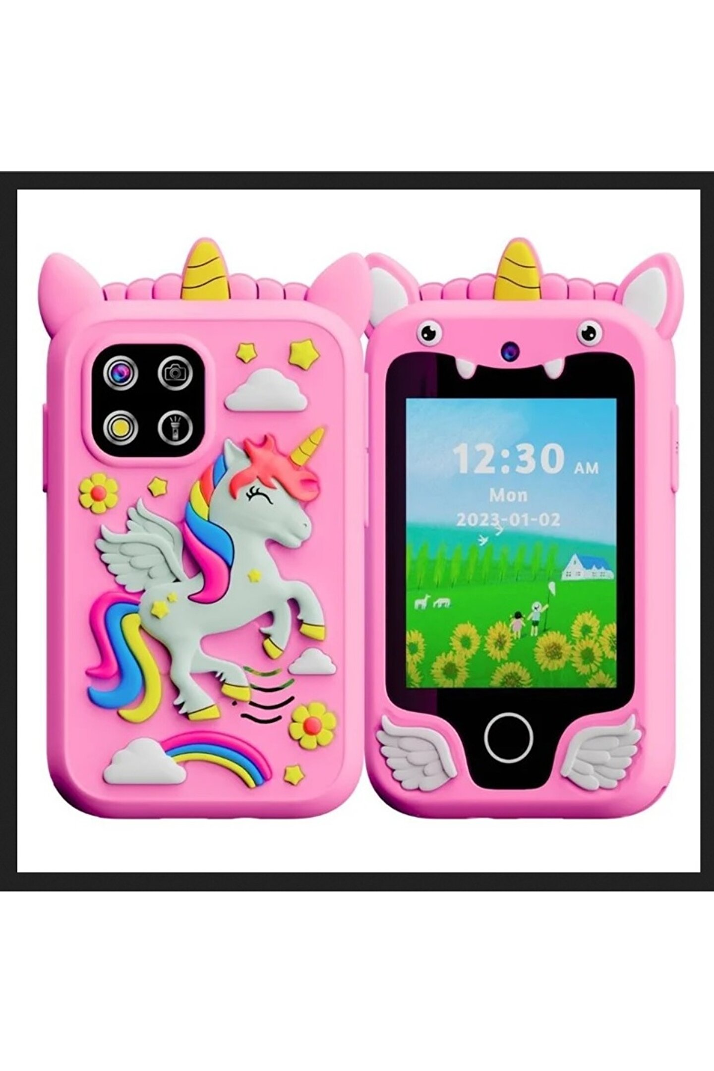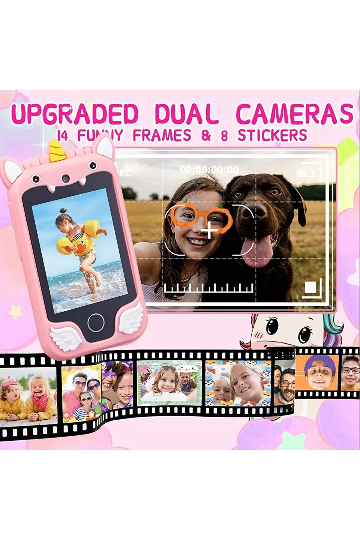 2.8 İnç Karikatür Hayvan Çift Lensli Dokunmatik Ekranlı Çocuk Kamerası Oyuncak Telefon Dahili Oyunlar - Pembe Tek Boynuzlu At