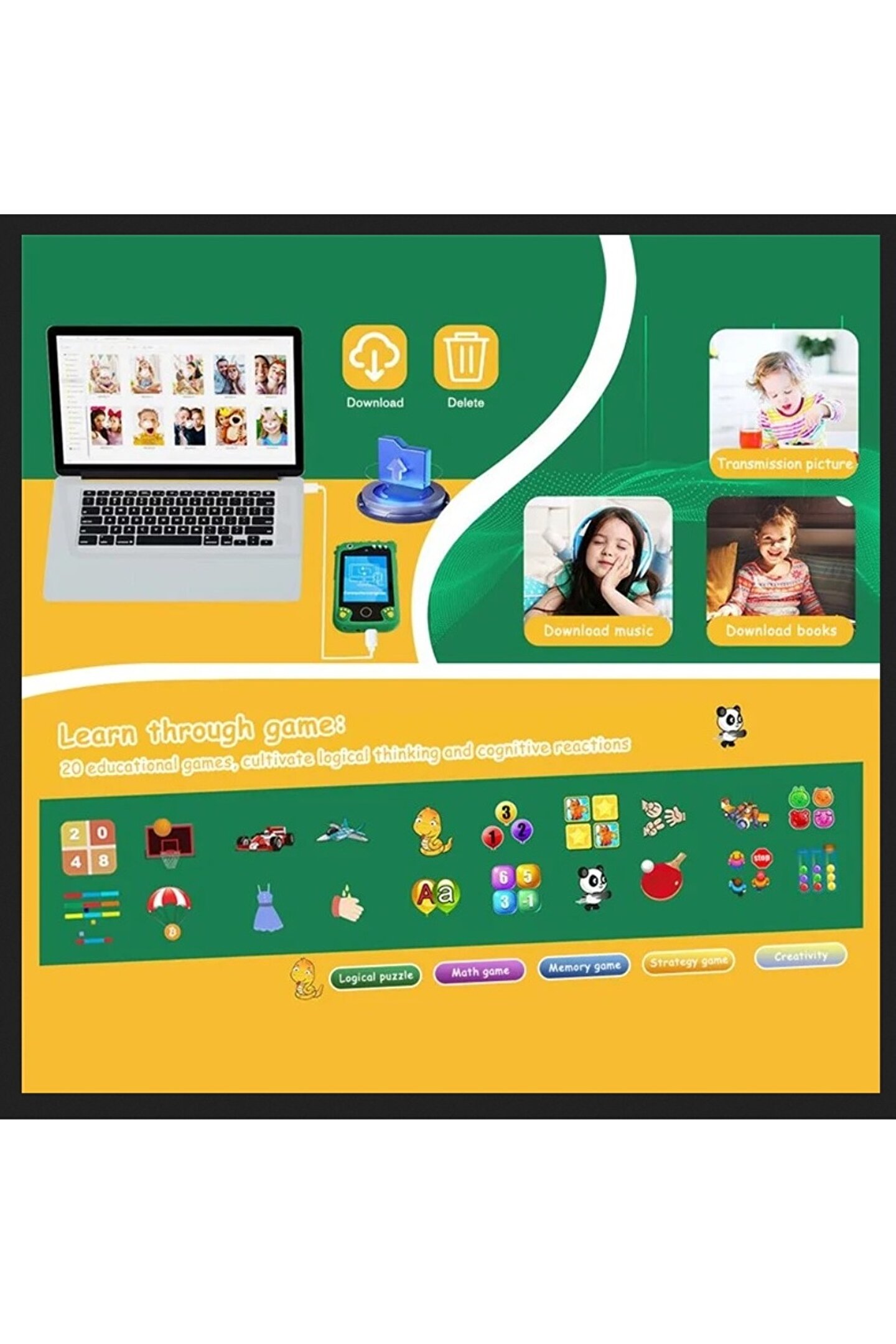 ?Çok İşlevli Eğlence?Çocukları eğlendirmek ve öğretmek için kamera, müzik, ses kaydedici, oyunlar, el feneri, çalar saat ve daha fazlasını içerir