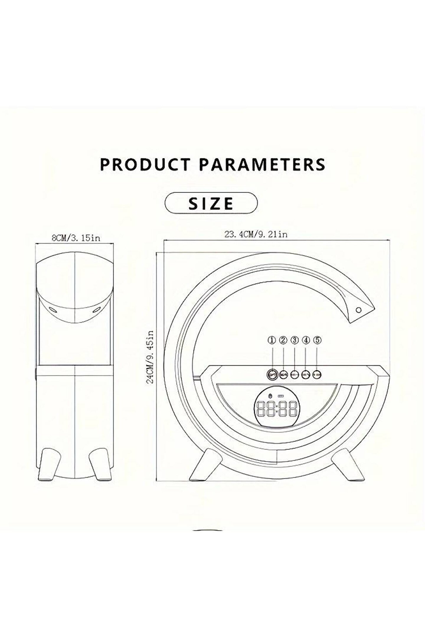 Bluetooth'lu LED Kablosuz Şarj Hoparlörü.Şartname: Kablosuz Şarj Gücü : 15W Bluetooth Sürümü: 5.3 Bluetooth Adı: BT3401 Çıkış Gücü : 5W Bluetooth Frekansı :2,4 GHz - 2,48 GHz İletim Mesafesi: 10 metre Ses Frekans Aralığı: 50HZ- 20KHZ Dahili Lityum Pil Gerilimi: 3,7V Şarj Girişi: DC5V/500MA Ürün Boyutu: 235*80*238mm FM Radyo Dört Oynatma Modu: BT Play, USB, TF Kart ve AUX BLUETOOTH İLE TELEFONA BAĞLANDIGINDA OTOMATİK SAAT AYARI YAPARALARM İÇİN M TUŞUNA 2 DEFA ARKA ARKAYA BASILMASI GEREKİR SAĞ VE SOL İLERİ GERİ TUŞLARINDAN AYARLANABİLİRAÇMA TUŞUNA UZUN BASILI TUTULDUGUNDA BLUETOOTH MODUNDA AÇILIRM TUŞUNDAN MOD DEĞİŞTİRİR FM RADYO SD KART USB GİBİAÇMA TUŞUNA BASIP ÇEKTİĞİNİZDE IŞIK MODLARI DEĞİŞTİRİRKABLOSUZ ŞARJ KULLANILABİLMESİ İÇİN ŞARJA TAKILI OLMASI GEREKİR