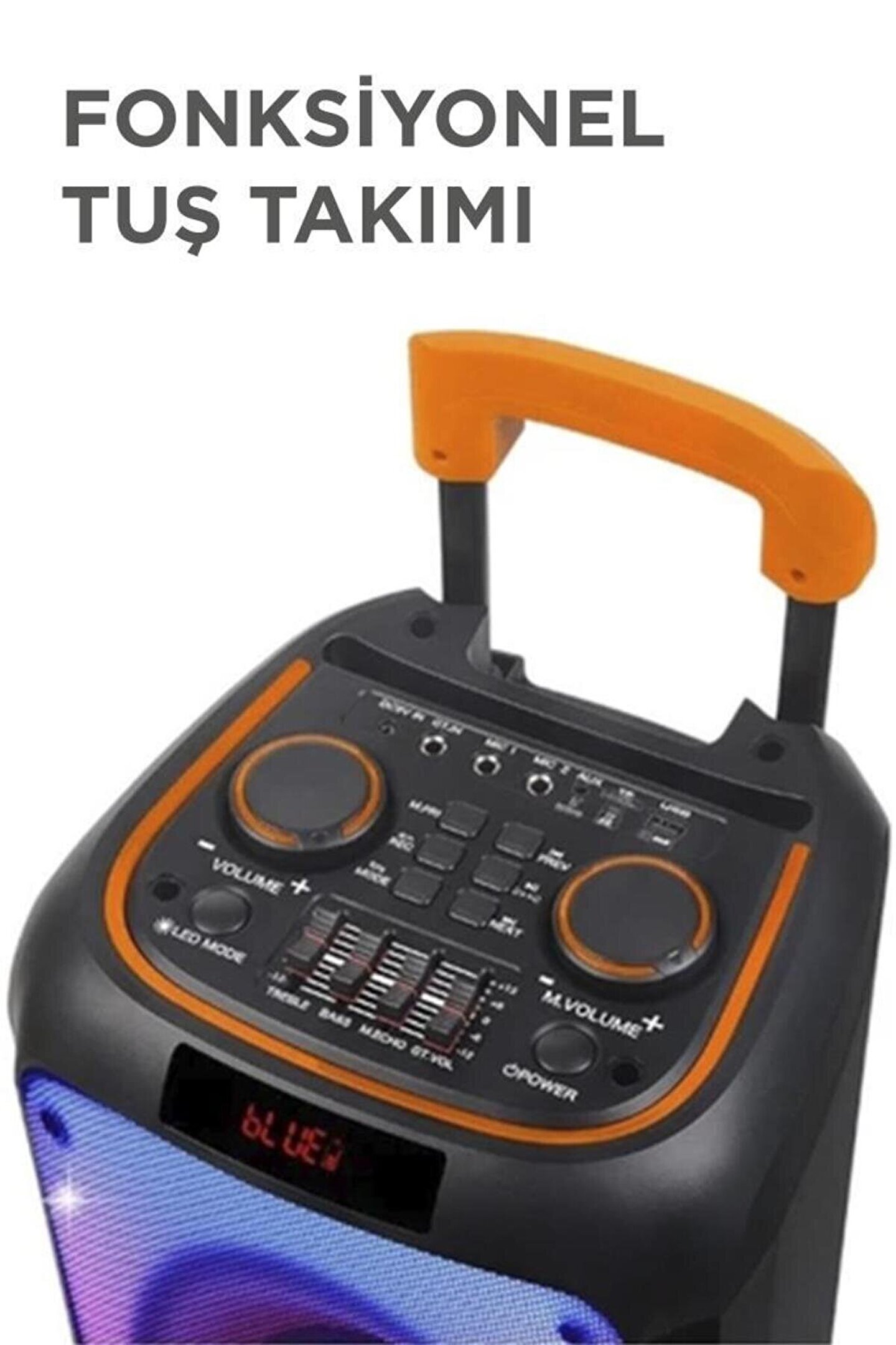 TORİMA NDR-1095 Siyah Taşınabilir Büyük Boy Rgb Bluetooth Mikrofonlu Parti Hoparlör Güçlü Ses ve Işıklandırma ile Eşsiz Bir Eğlence Deneyimi TORİMA NDR-1095 Siyah Taşınabilir Büyük Boy RGB Bluetooth Mikrofonlu Parti Hoparlörü ile evinizi adeta bir parti alanına dönüştürmeye hazır olun! 40W gücünde çift 8 inç hoparlörleri ile kusursuz bir ses deneyimi sunan bu hoparlör, LED frekans ekran lambası, alev lambası ve ışık halkası ile ortamınızı göz alıcı ışıklarla süsler.; Özellikler: Güçlü Ses: 40W gücünde çift 8 inç hoparlörler ile net ve güçlü ses Çeşitli Işıklandırma Seçenekleri: LED frekans ekran lambası, alev lambası ve ışık halkası ile ortamınızı dilediğiniz gibi aydınlatın Çoklu Bağlantı Seçenekleri: USB, TF kart, Bluetooth ile müzik dinleyebilir, FM radyo ile sevdiğiniz programları takip edebilirsiniz Ekran: Şarkı ismi, pil durumu ve diğer bilgileri gösteren ekran Uzaktan Kumanda: Hoparlörü rahatça kontrol edin TWS (True Wireless Stereo): İki NDR-1095 hoparlörü eşleştirerek stereo ses deneyimi yaşayın Kablosuz Mikrofon: Karaoke ve sunumlar için ideal Demir Ağ: Hoparlörü darbelere karşı korur Serin ve Çeşitli Renkli LED: Müzik keyfinizi görsel bir şölenle tamamlayın Taşınabilir Tasarım: Hafif ve ergonomik tasarımı ile kolayca taşınabilir Ürün Boyutları: Hoparlör Boyutu: 285*285*600mm Renk Kutusu Boyutu: 323*315*685mm Ağırlık: 8 kg TORİMA NDR-1095 ile: Evinizdeki partilere ve kutlamalara renk katın Arkadaşlarınızla karaoke yaparak eğlenin Pikniklerde ve açık hava etkinliklerinde müzik keyfini doyasıya yaşayın Sunumlarınızda ve konferanslarda ses sisteminizi güçlendirin Mağazanızda veya işyerinizde ortam müziği çalın
