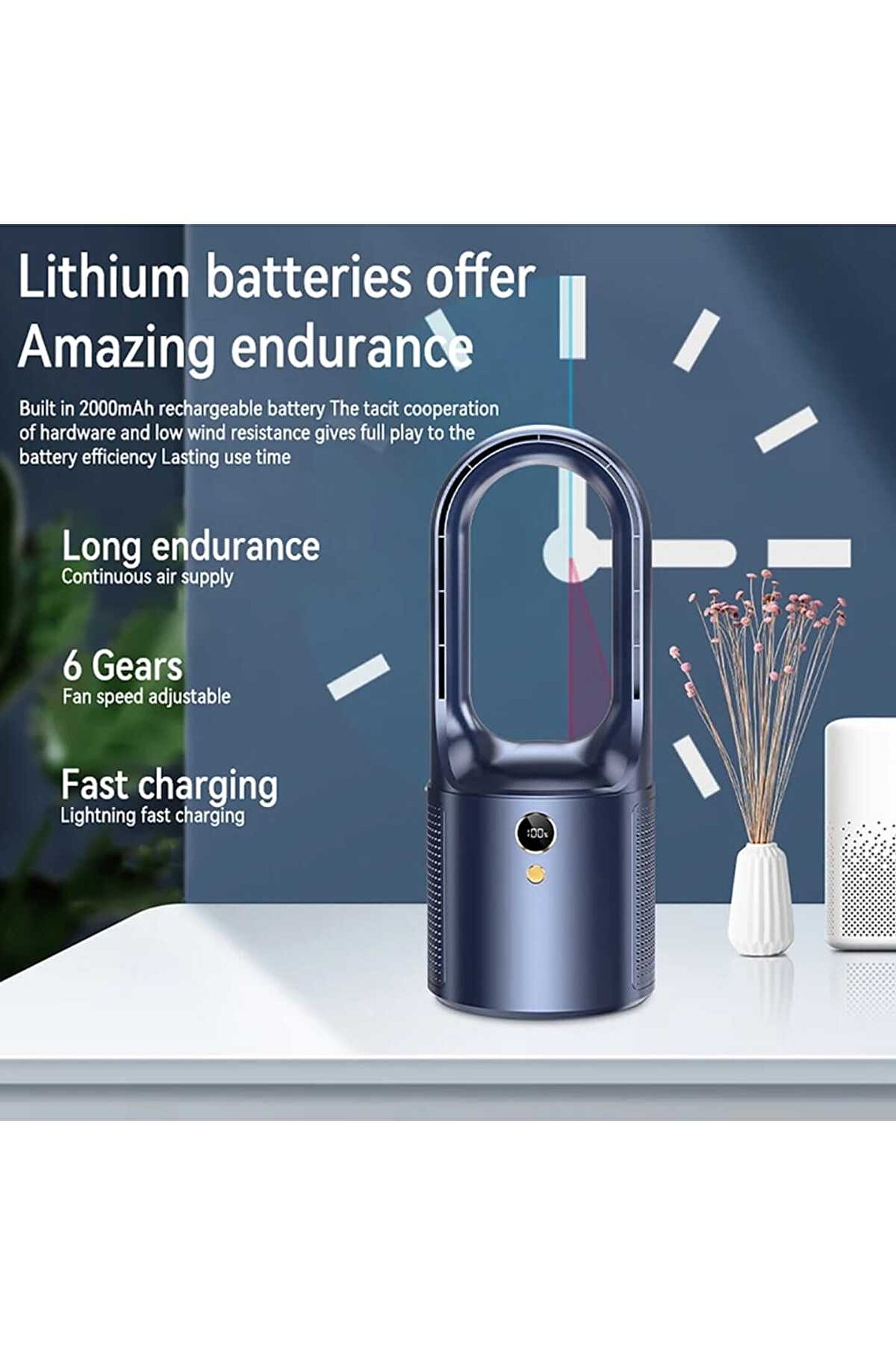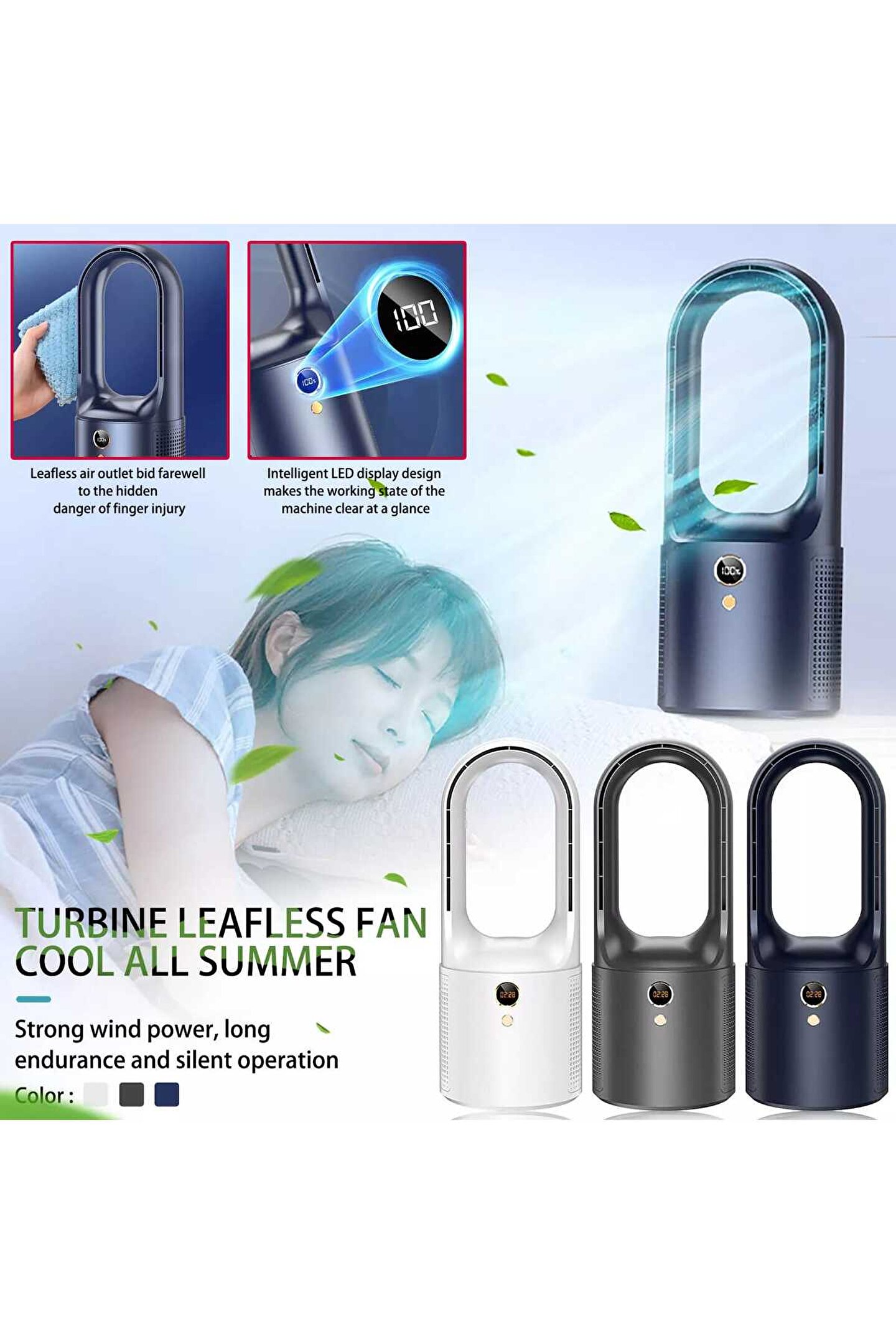Özellikler: 1.Güvenli bıçaksız tasarım, ellerin zarar görmesini önler ve temizlik için uygundur. ; 2. ; Ayarlanabilir 6 rüzgar dişlisi, farklı yerlerde farklı soğutma ihtiyaçlarını karşılar. ; 3. ; Dahili 2000mAh lityum pil, uzun pil dayanıklılığı için hızlı şarj. ; 4. ; Hafif ve taşınabilir, yurt, ev, kamp ve ofise uygundur. ; 5.Üç yüksek dereceli renk eşleştirme, modern teknoloji anlayışı, çok yönlü. ; 6.Sadece 20db düşük gürültülü çalışma, rahatsız etmeden sessiz bir şekilde eşlik eder. ; 7. ; Boyut: 135*135*330MM Paket şunları içerir: 1 x Kanatsız fan 1 x USB kablosu 1 x Manuel;