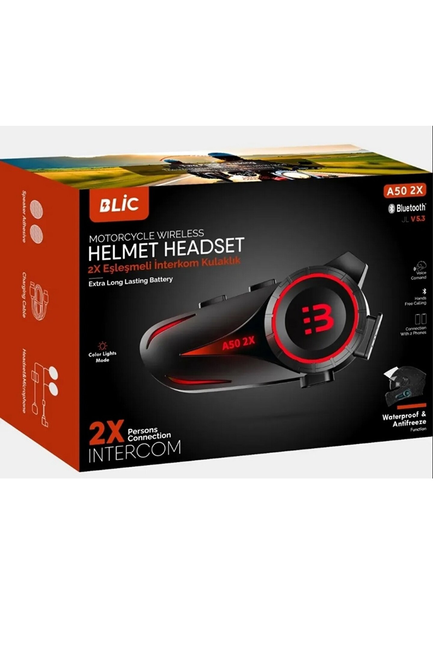 • MOTORSİKLET BLUETOOTH 5.3 KULAKLIK 2X SÜRÜCÜ BAĞLANTILI RGB LED IŞIKLI İNTERCOM