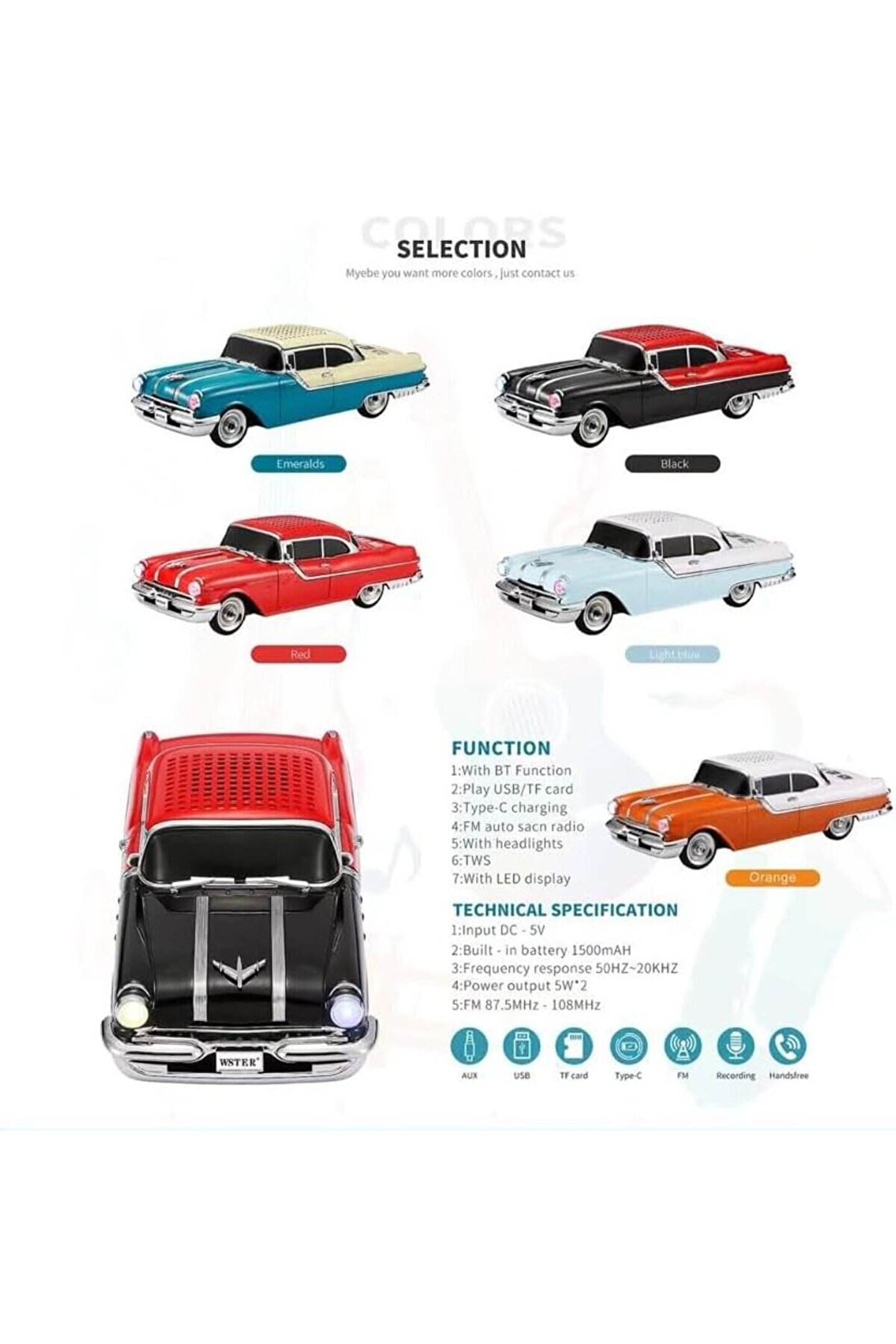 Klasik araba şekilli hoparlör Subwoofer TF kart FM radyo AUX Handsfree ile kablosuz Bluetooth süper bas TWS fonksiyonu ses kutusu