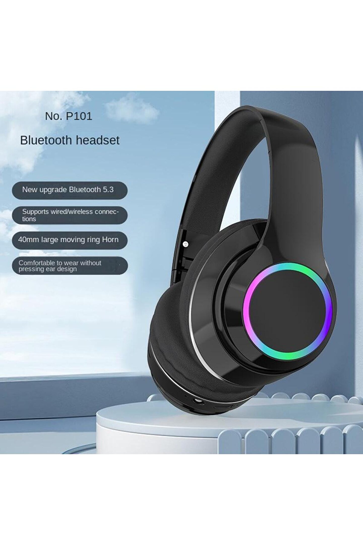 JUNGLEE P101 BLUETOOTH KULAKLIK 5.3 WİRELESS HEADPHONE ŞARJLI RGB LED IŞIKLI FM RADYO SD KART TYPE C ŞARJ