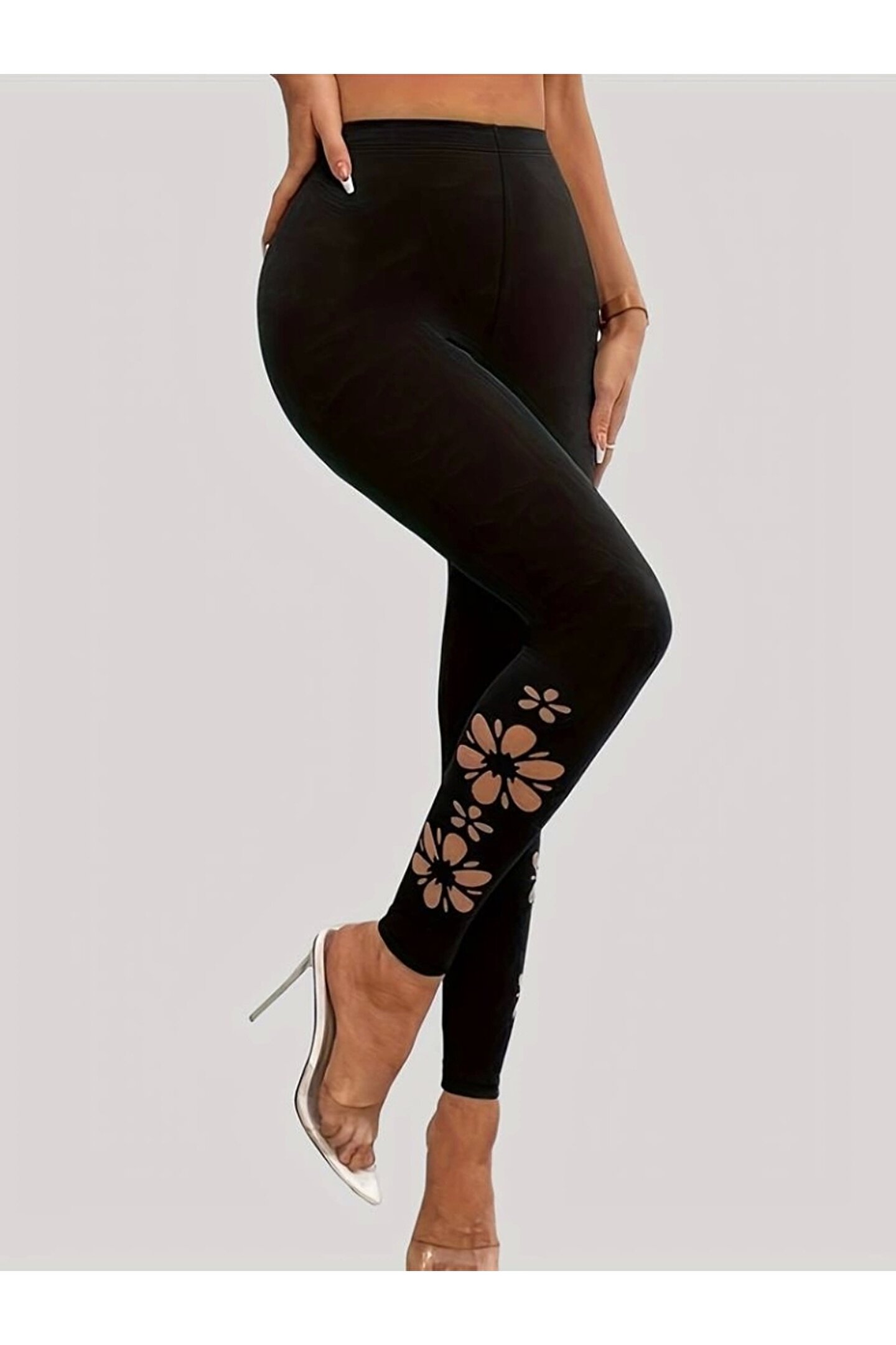Kadın Yanları Lazer çiçek Kesim Yüksek Bel Dalgıç Tayt