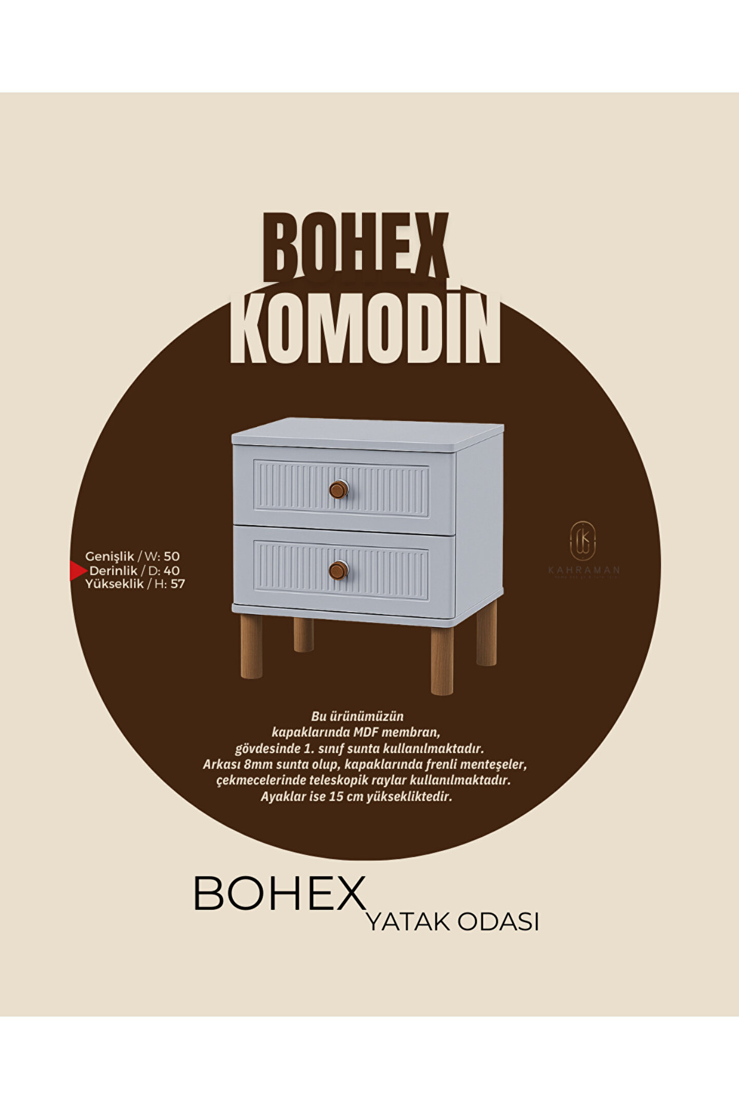 Kahraman Mobilya Aksesuarları Bohex Yatak Odası Takımı - MDF Kapak Gardırop - Şifonyer - 2li Komodin