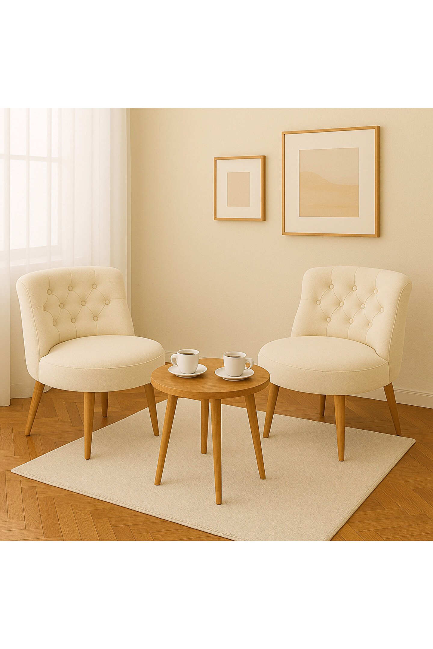 - Modern tasarımıyla evinizin dekorasyonuna şıklık katan ikili berjer koltuk, krem rengiyle mekanınıza sıcaklık ve zarafet katıyor.; - Dayanıklı suntalam malzemeden üretilmiş yapısı sayesinde uzun ömürlü kullanım sunar.; - Ahşap ayakları ile sağlam ve estetik bir görünüm sağlar; her türlü iç mekanla uyum içinde olur.; - Nubuk kumaşı kolay temizlenebilir özelliğiyle pratiklik kazandırırken, leke tutmaz özelliğiyle bakımı kolaylaştırır.; - 1 yıl garantisiyle satın alma sonrasında da güven verir; kalite standartlarından ödün vermeyen üretim anlayışının bir göstergesi olarak karşınızda.; - 60 cm derinliği ve genişliğiyle ideal oturma alanı sunarak rahat bir dinlenme imkanı tanır.; - Modern tema ve stil özellikleriyle çağdaş yaşam alanlarına mükemmel uyum sağlar; minimalist detaylarıyla dikkat çeker.; - Çocukların ürünü zıplamasına karşı uyarı niteliğindeki uyarı etiketi bulunur; böylece hem güvenlik hem de konforu ön planda tutar.; - Kimyasal deterjanlardan kaçınılması gerektiği belirtilen çocuk dostu tasarım, çocukların oyun oynarken keyif alabileceği güvenli bir ortam oluşturur.; - 60 x 75 cm boyutlarındaki bu krem renkli berjer seti, küçük alanlardan büyük salonlara kadar her mekâna uygunluk gösterir.; - Üreticisi Kahraman Mobilya tarafından kaliteli işçilikle üretilmiştir; Türk malı olması gurur verici bir detaydır.