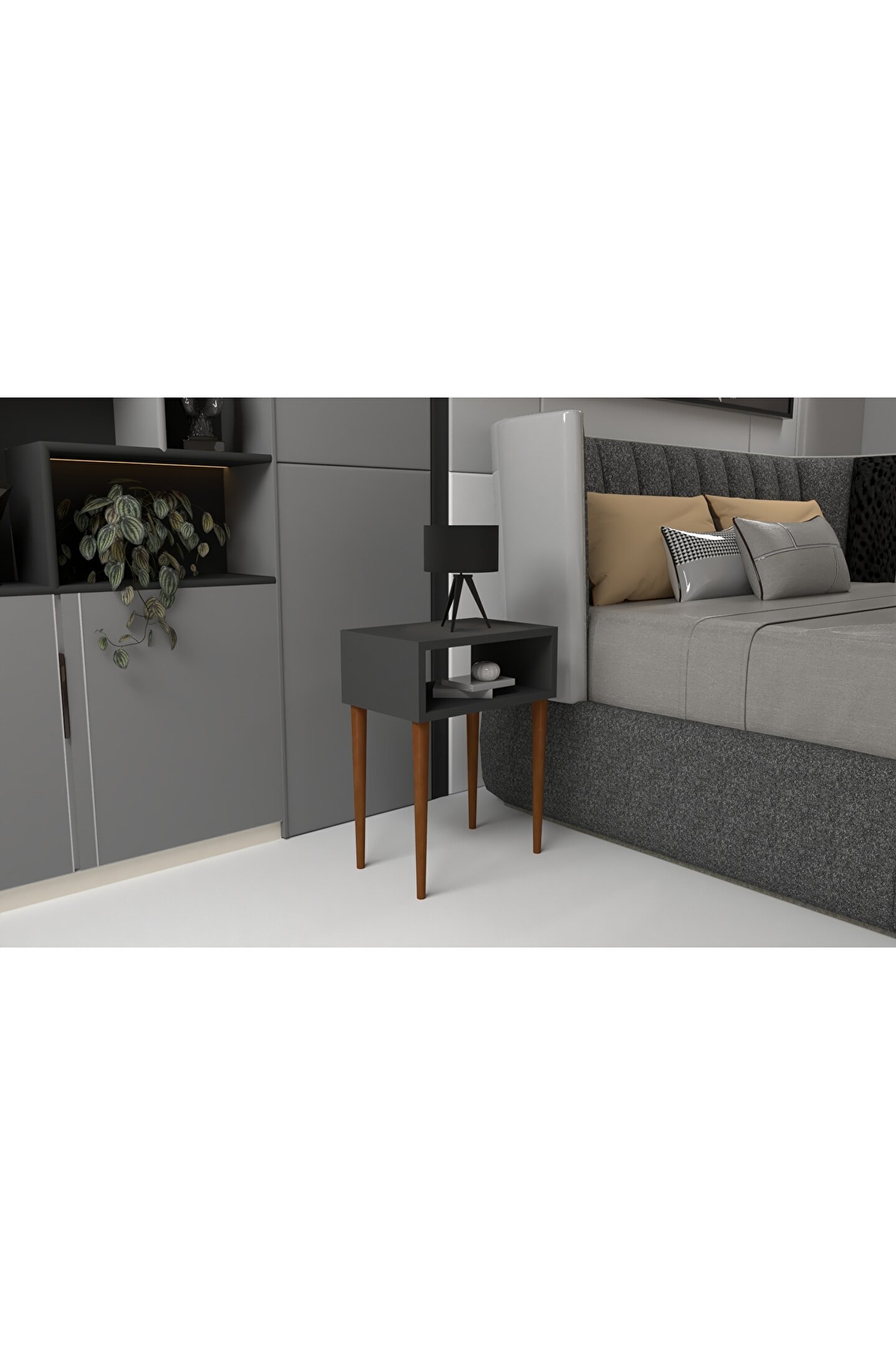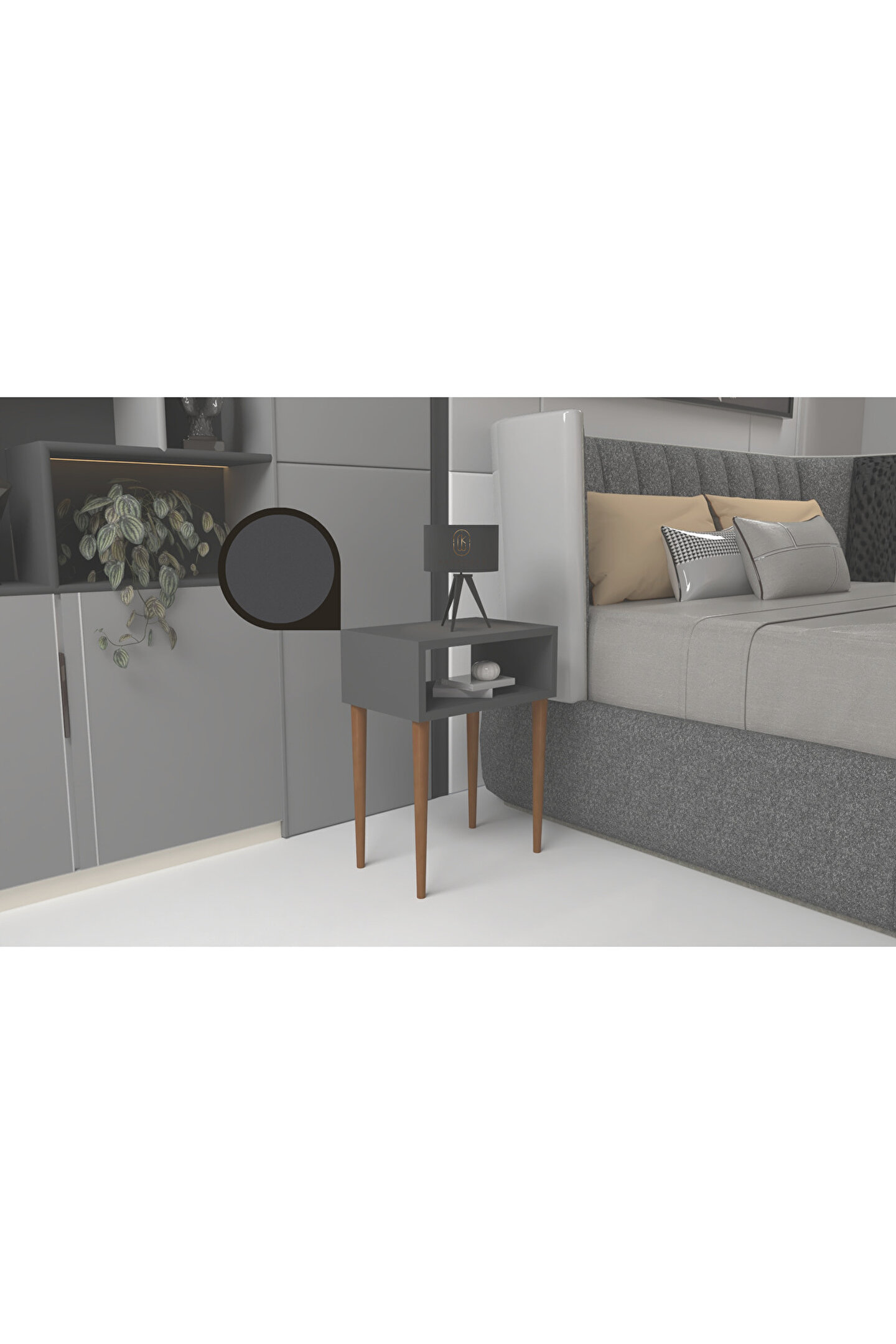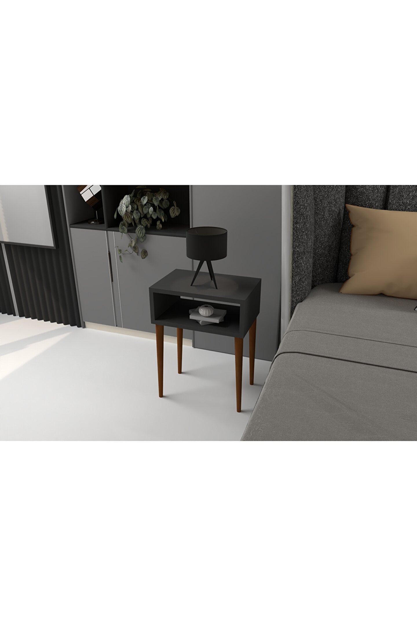 Kahraman Mobilya Aksesuarları Katre Baş Ucu Komodin - Antrasit Gri