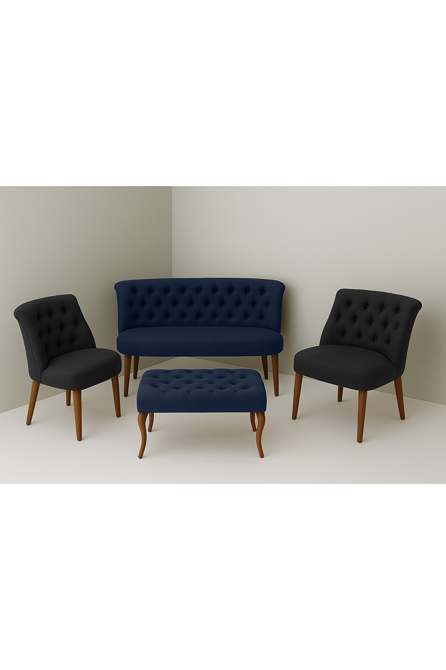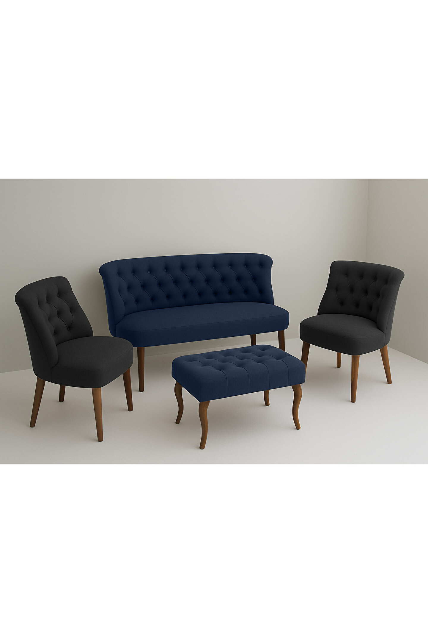 Kahraman Mobilya Aksesuarları Kutay Çay Seti Koltuk Takımı - Lacivert & Antrasit Gri