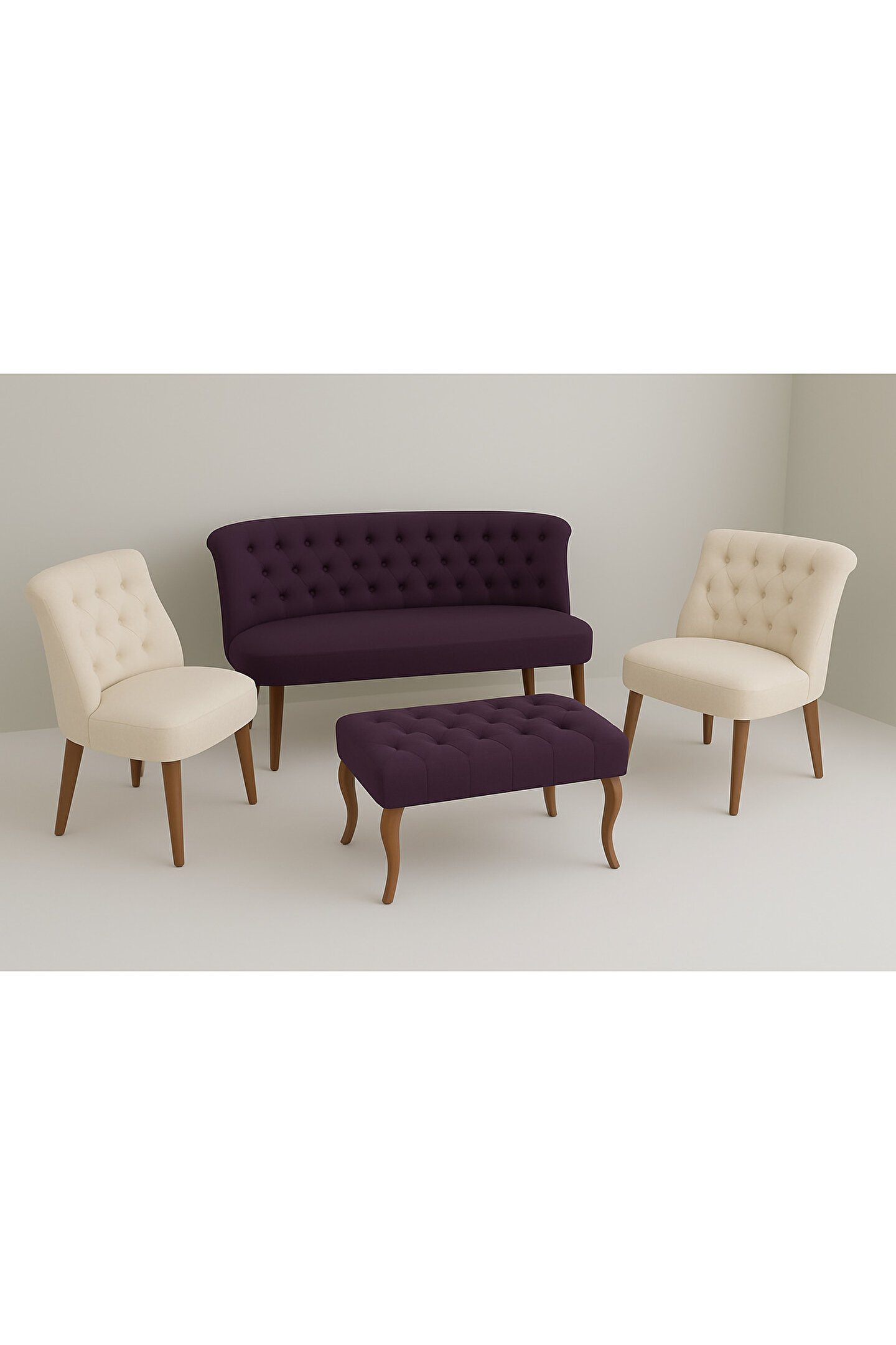 Kahraman Mobilya Aksesuarları Kutay Çay Seti Koltuk Takımı - Mor & Krem