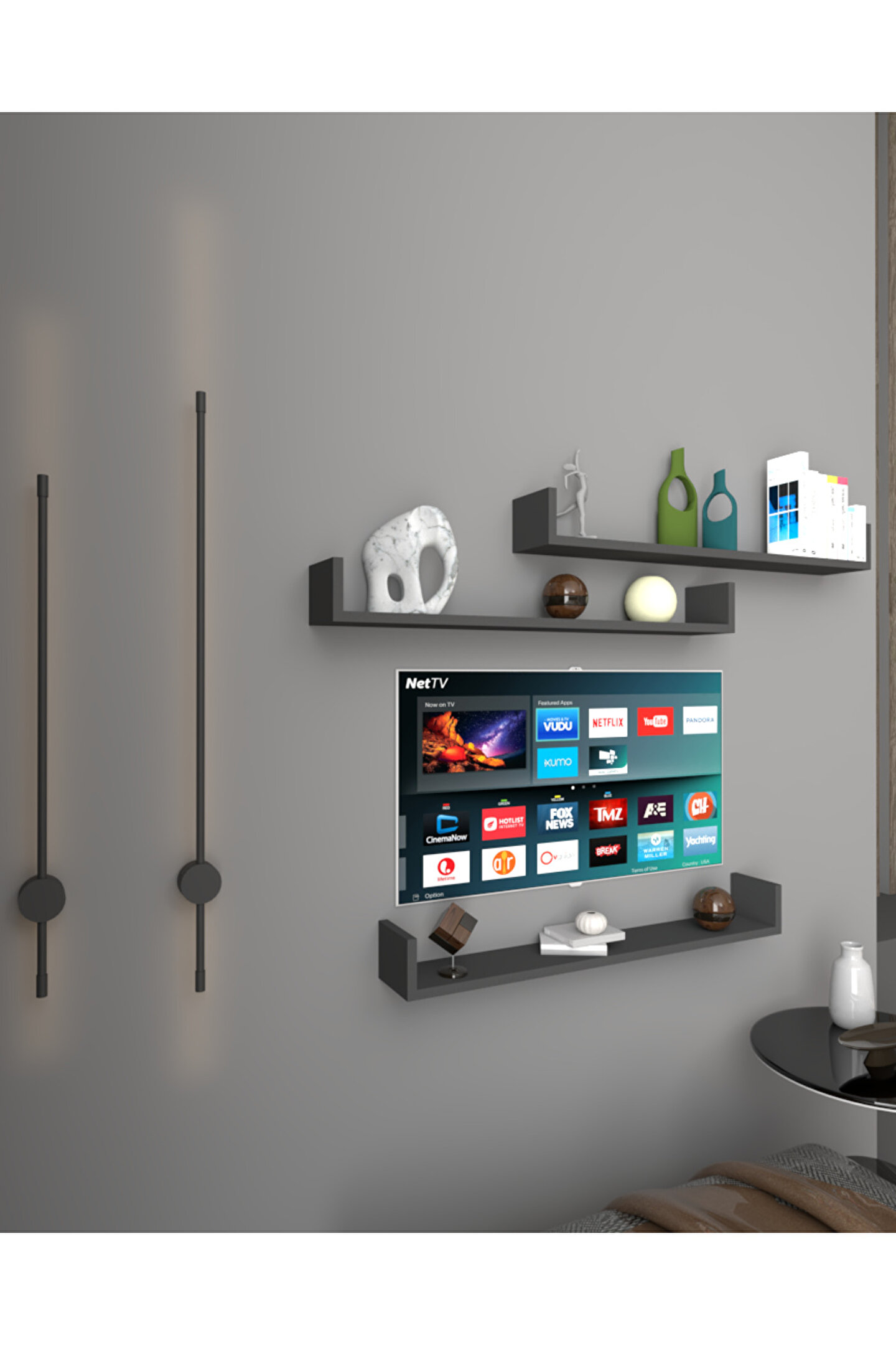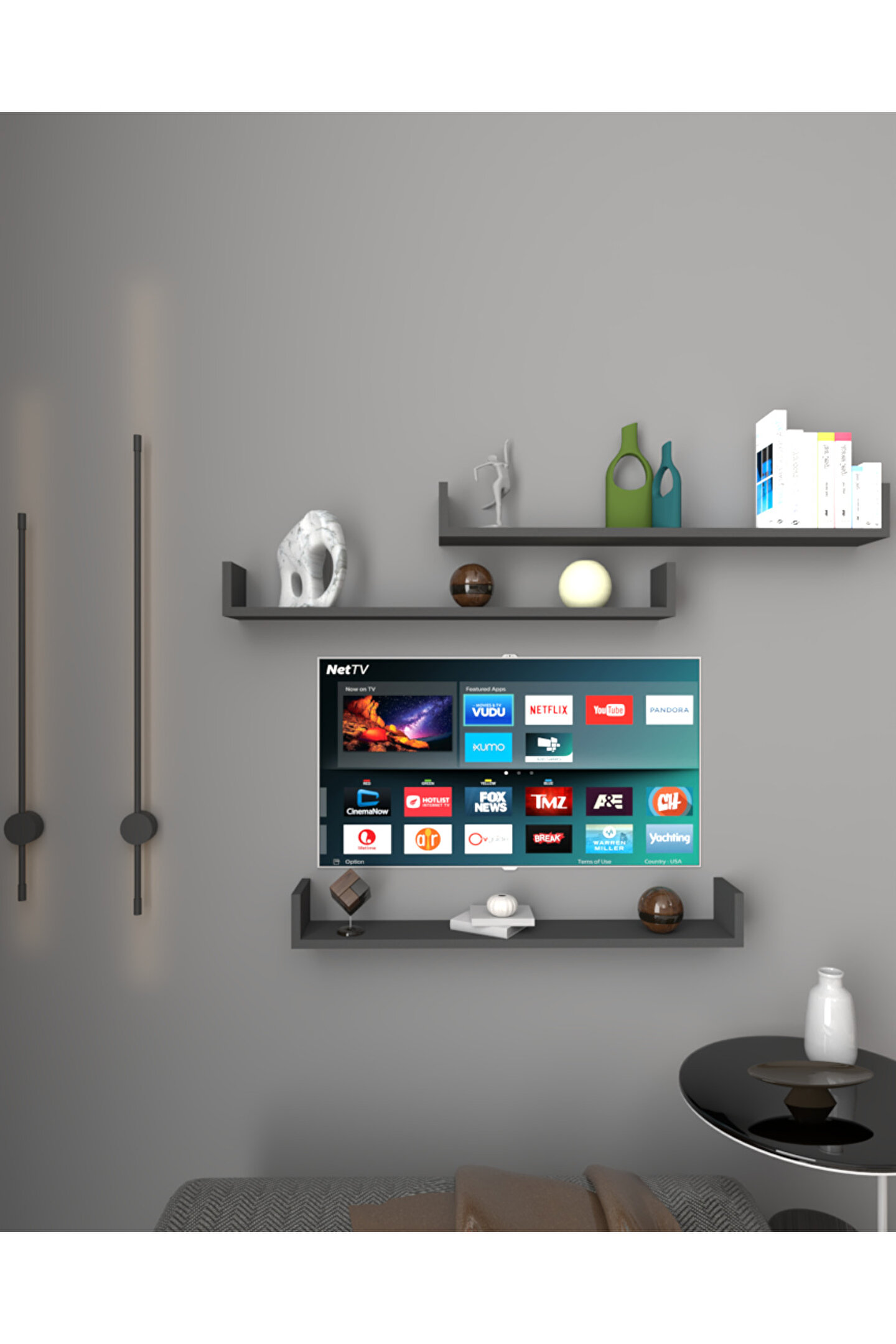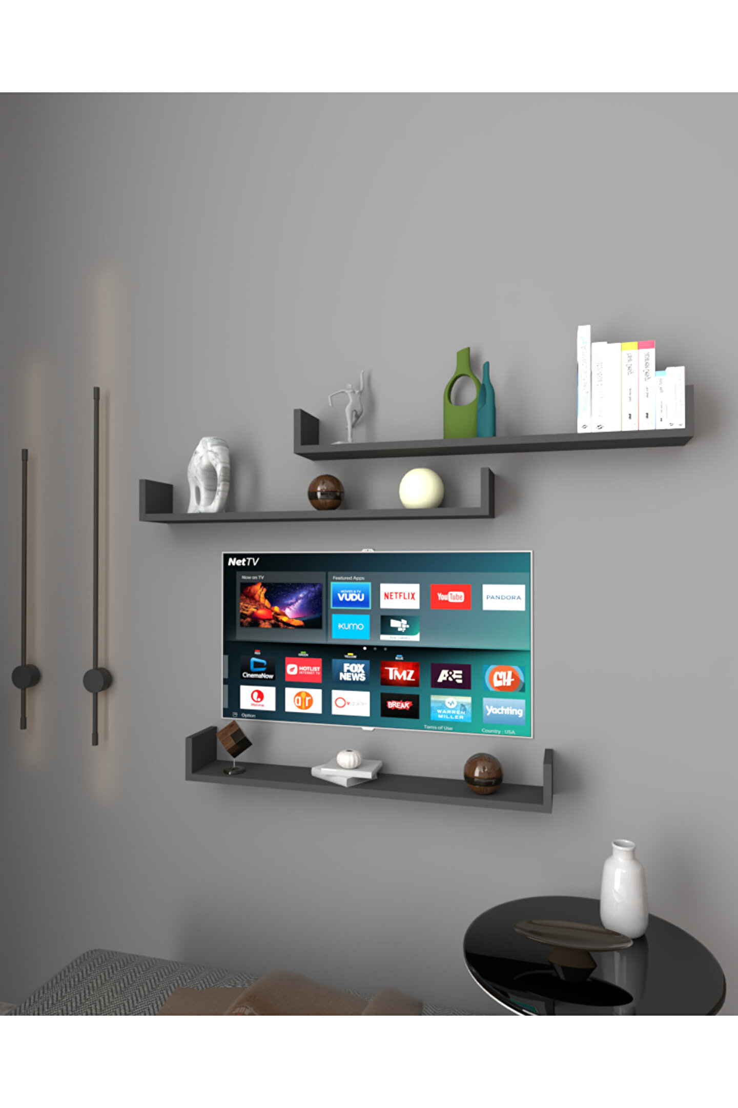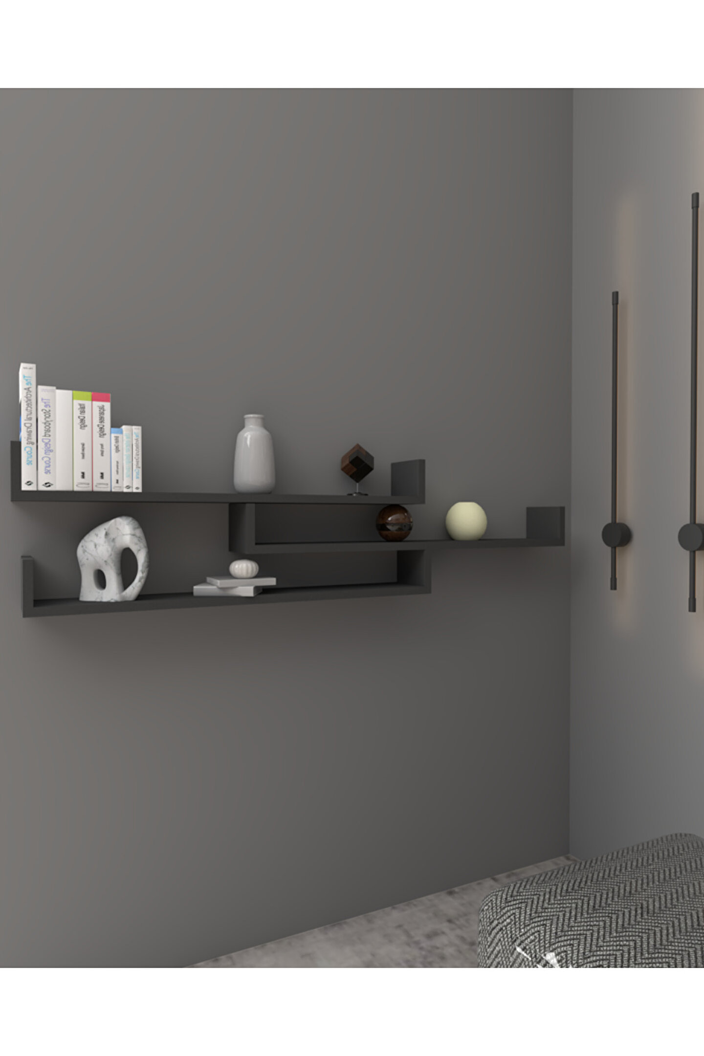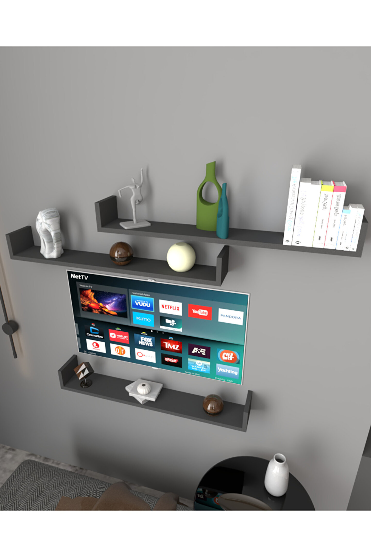 Kahraman Mobilya Aksesuarları Üçlü Uçan Raf - Tv Rafı - Duvar Rafı - Kitaplık Rafı - Antrasit