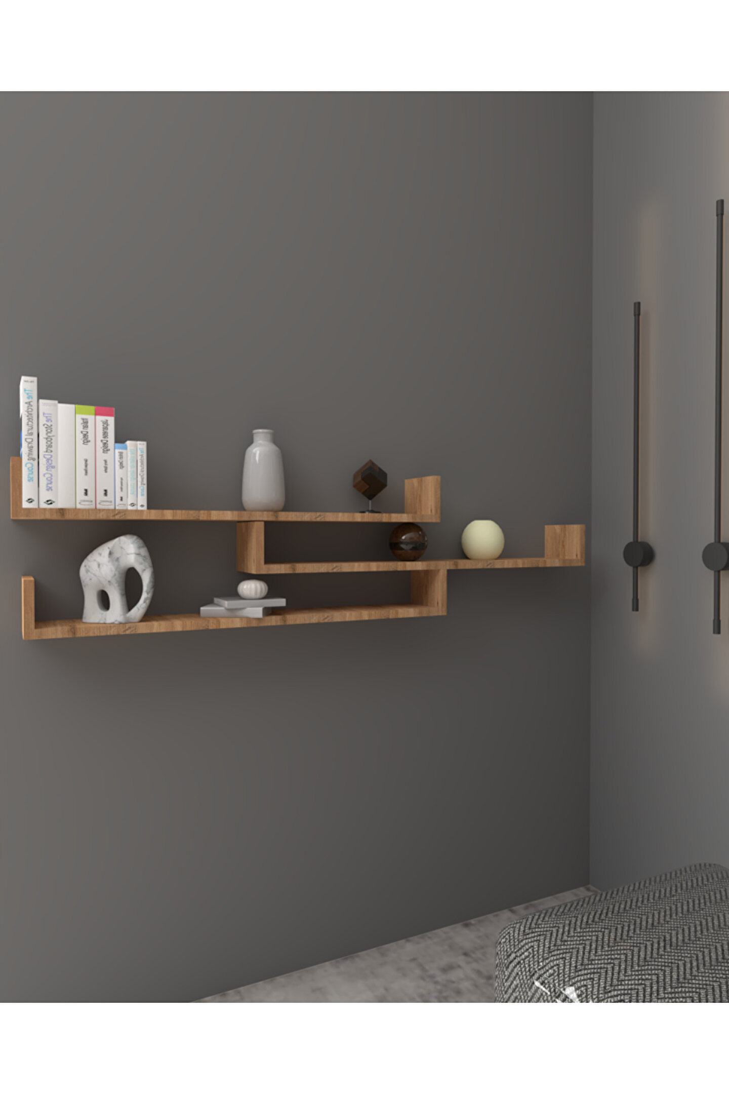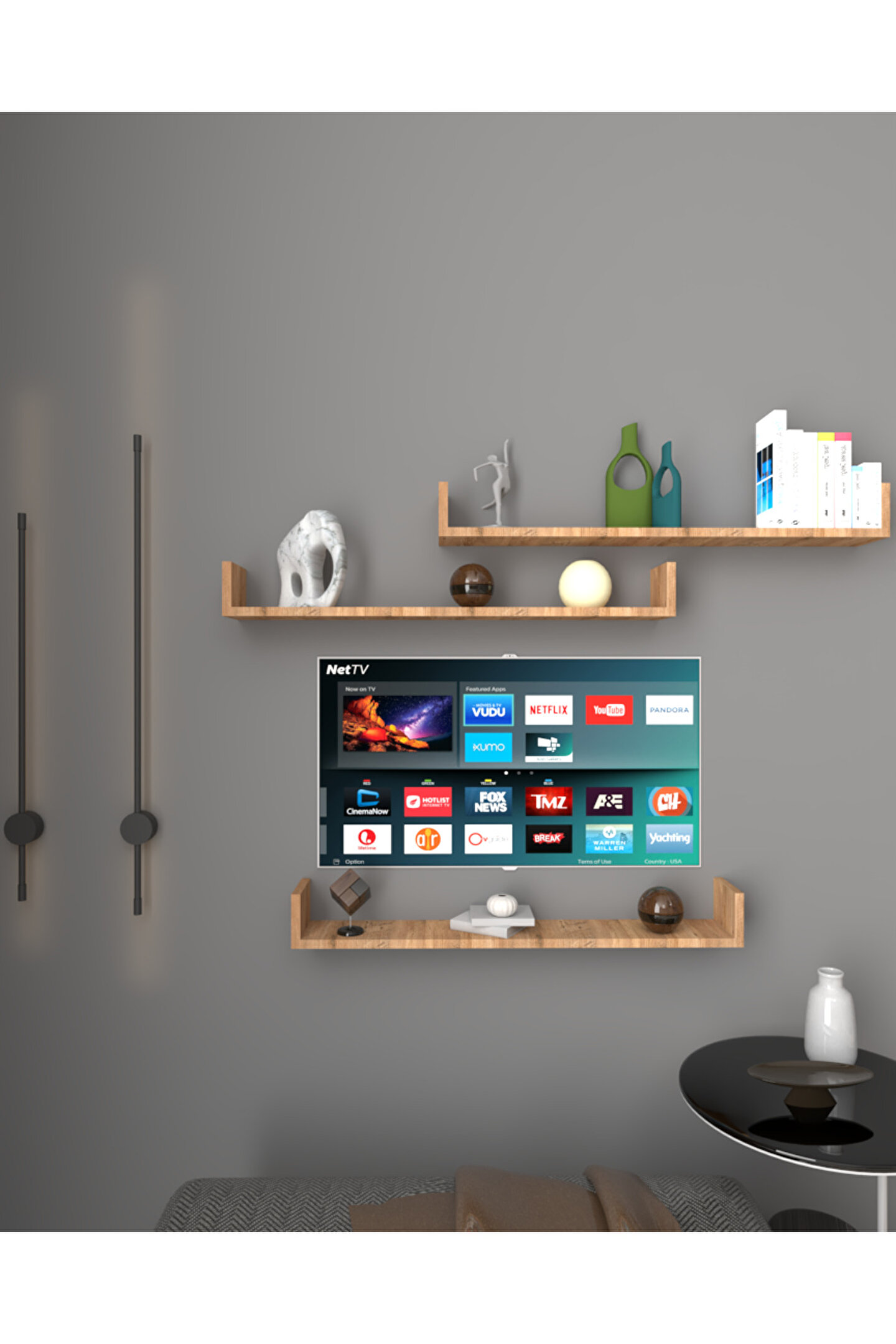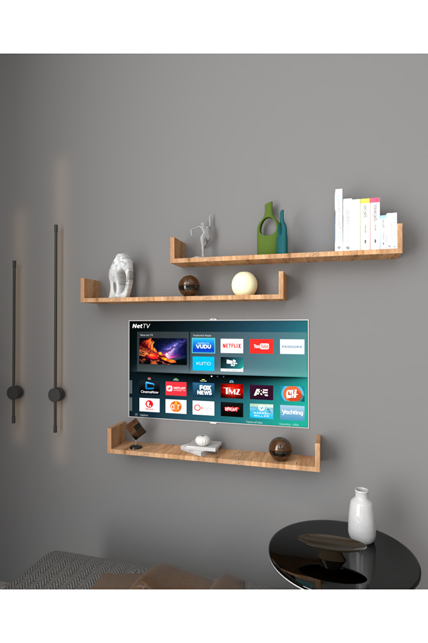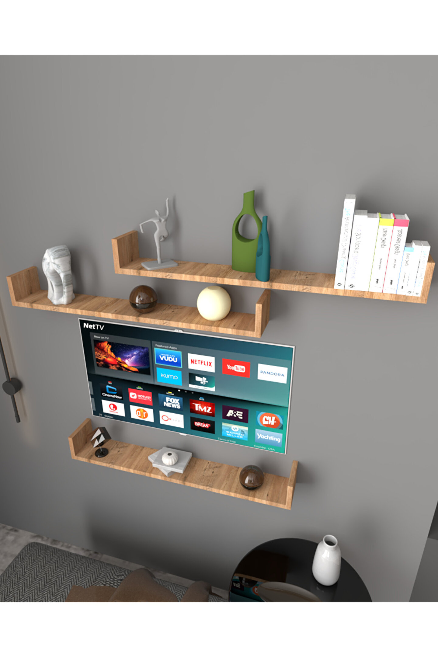 Kahraman Mobilya Aksesuarları Üçlü Uçan Raf - Tv Rafı - Duvar Rafı - Kitaplık Rafı - Atlantik Çam