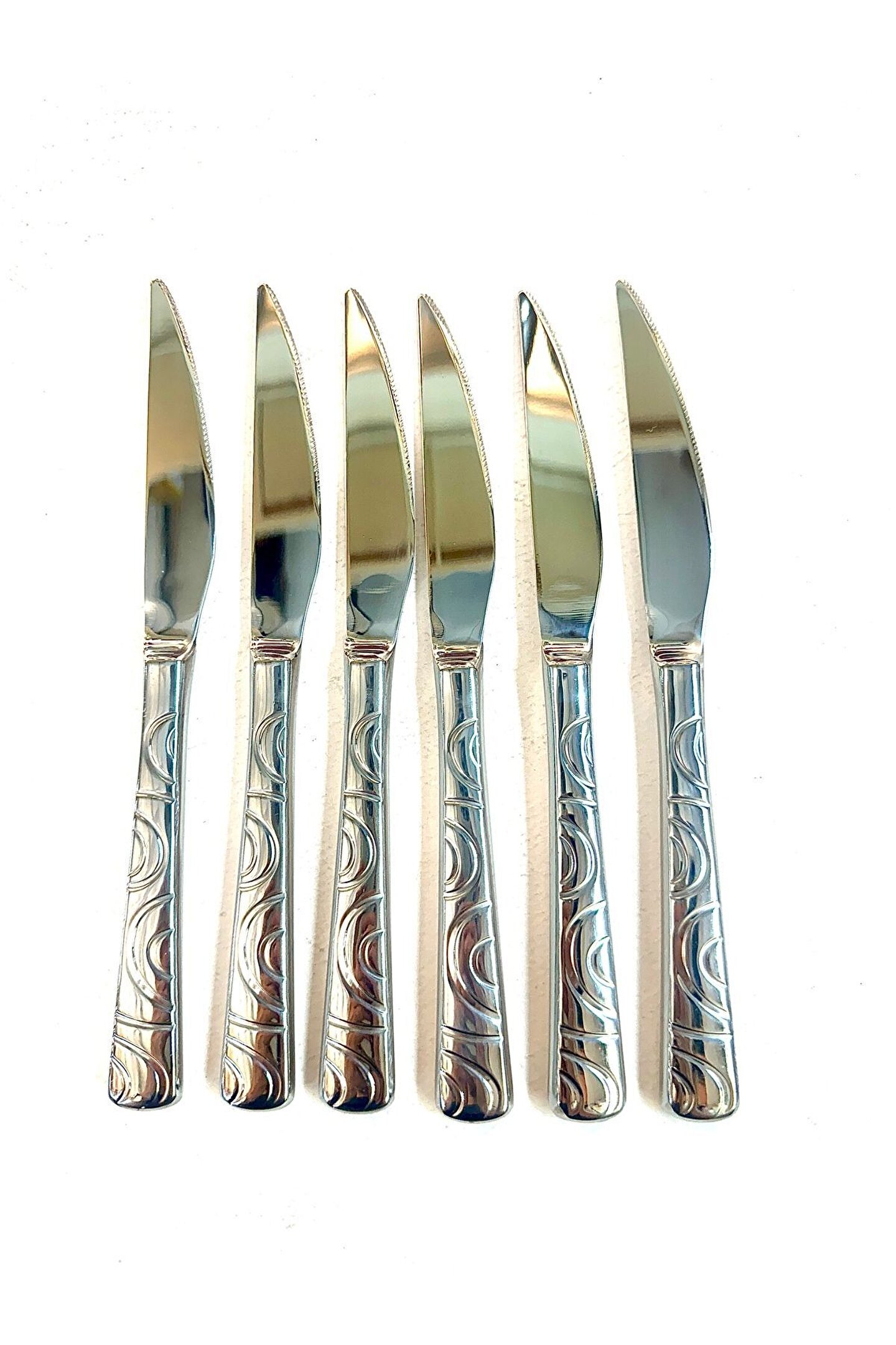- 6 kişilik yemek davetlerinizde ihtiyacınız olan her şey tek pakette; 6 adet sarmaşık yemek bıçağı ile sofralarınızı tamamlayın; - Dayanıklı çelik malzemesi sayesinde uzun ömürlü kullanım sunar ve sık kullanımlarda bile bıçaklarınızın keskinliğini korur; - Bıçak seti olarak tasarlanmış bu ürün, mutfakta ihtiyacınız olan pratikliği ve şıklığı bir arada sunar;