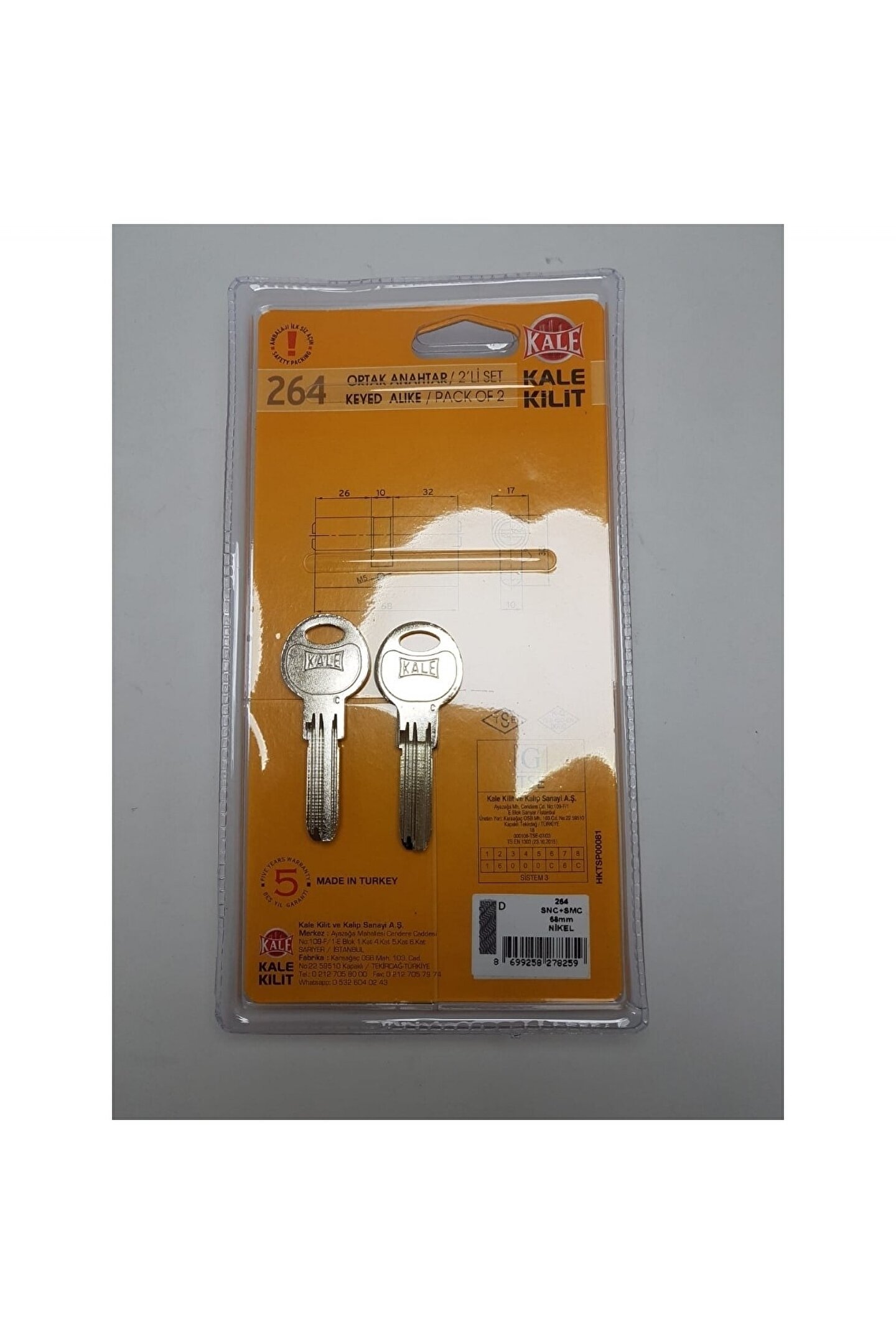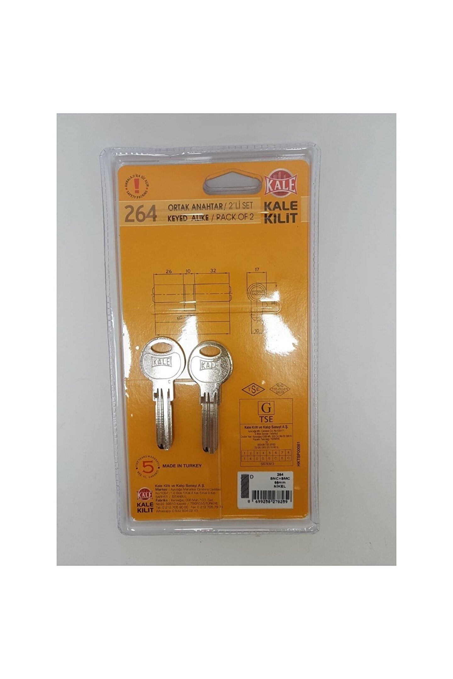 264 2 li set tuzaklı mandallı saten ortak anahtar 2 anahtar hediye. ; Toplamda 5 anahtar. ; Ürünün içerisinde 3 adet anahtar mevcuttur.;