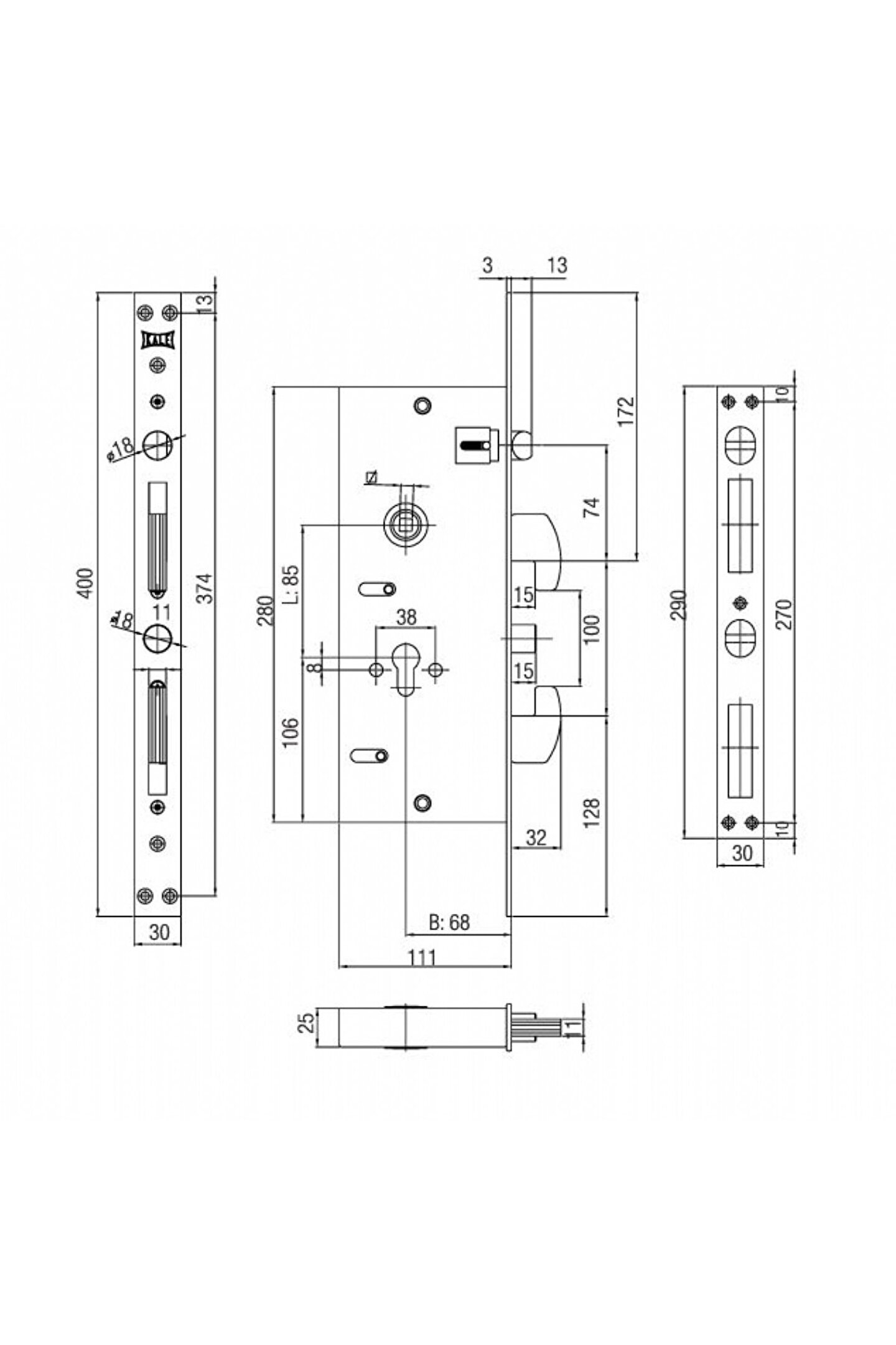 Teknik Bilgiler: Gövde: Çelik.; Galvaniz kaplamalı.; Ayna ve Karşılık: Çelik.; Krom kaplamalı.; Aynasız montaja uygun.; Sürgü ve Kanca: Çelik.; Krom kaplamalı.; Tek turlu.; Mandal: Çelik.; Krom kaplamalı.; Sertifikalar: TS EN 12209.