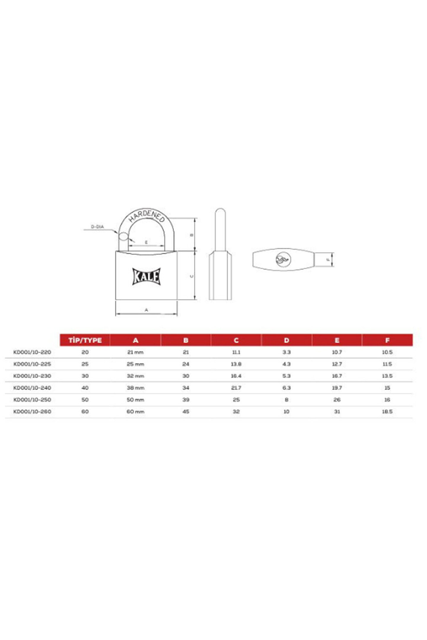 Kale Asma Kilit Sarı 50 Mm