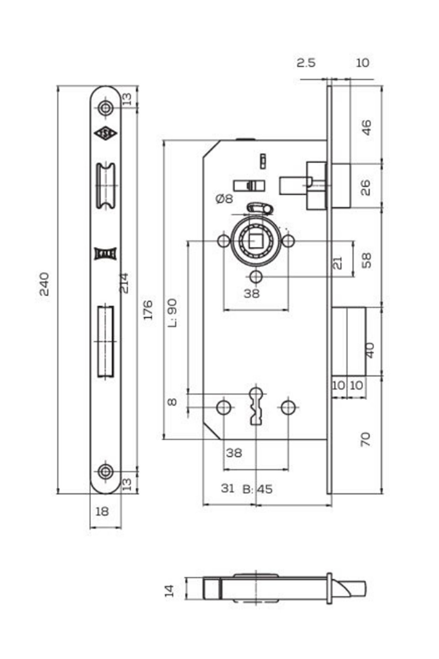 Kale Extra Gömme Kilit 18 Mm Ayna 45 Mm 141R