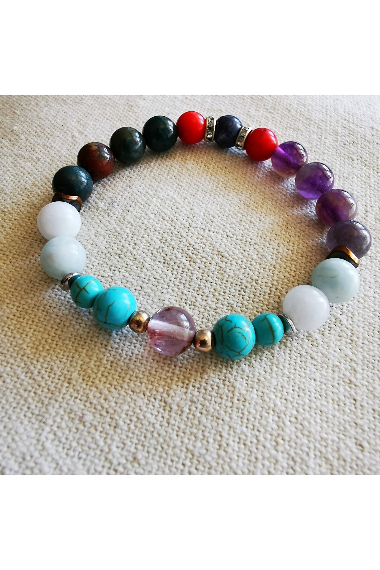 - Doğal taş kullanımı sayesinde her bileklik benzersiz ve özgün bir görünüm sunar; - Balık burcu için özel olarak tasarlanmış bu bileklik, burcunuzun enerjisini yansıtır ve şıklığınızı tamamlar; - Doğal taş materyali ile hem dayanıklılık hem de estetik bir dokunuş sağlar;
