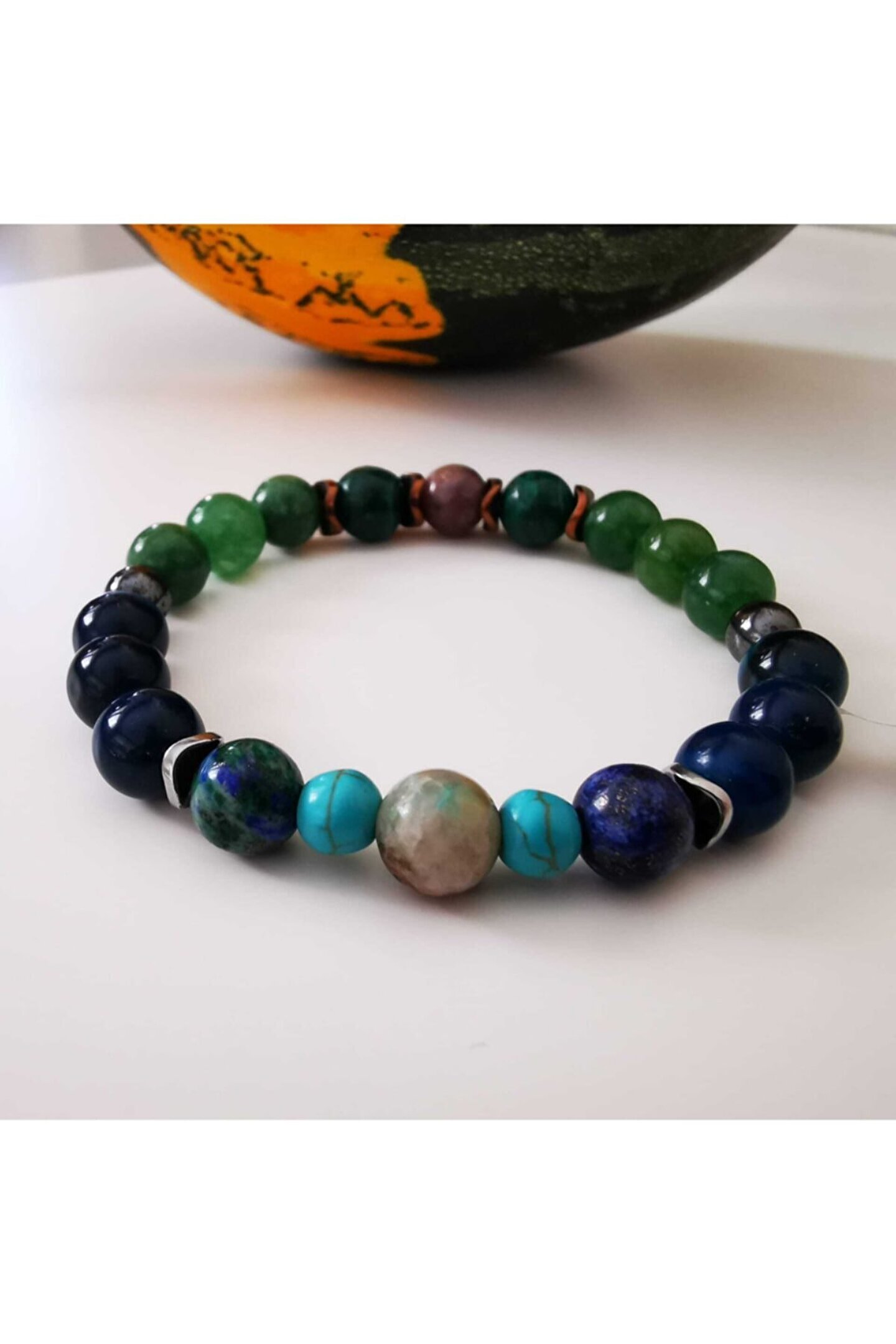 KAM Doğal Taş Takı Boğa Burcu %100 Doğal Taş Bileklik Boğa Burcu Bilekliği, Boğa burcunun özellikleri dikkate alınarak BOĞA burcuna özel olarak seçilmiş taşlar ile oluşturulmuştur %100 doğal taşlar ve doğal malzemeler kullanılarak özel olarak üretilmiştir. Boğa Burcu Taşları; Zümrüt 1, Akik 12, Azurit 2, Malakit( imt) 2, Krizakol 1, Turkuaz (imt) 2. Ürünlerimizin tamamı %100 doğal taşlar ve doğal malzemeler kullanılarak üretilmiştir. (Plastik, tahta, silikon boncuklar kesinlikle kullanılmamıştır.) (Yapay oluşturulmuş taşlar taş içeriğinde belirtilmiştir.)