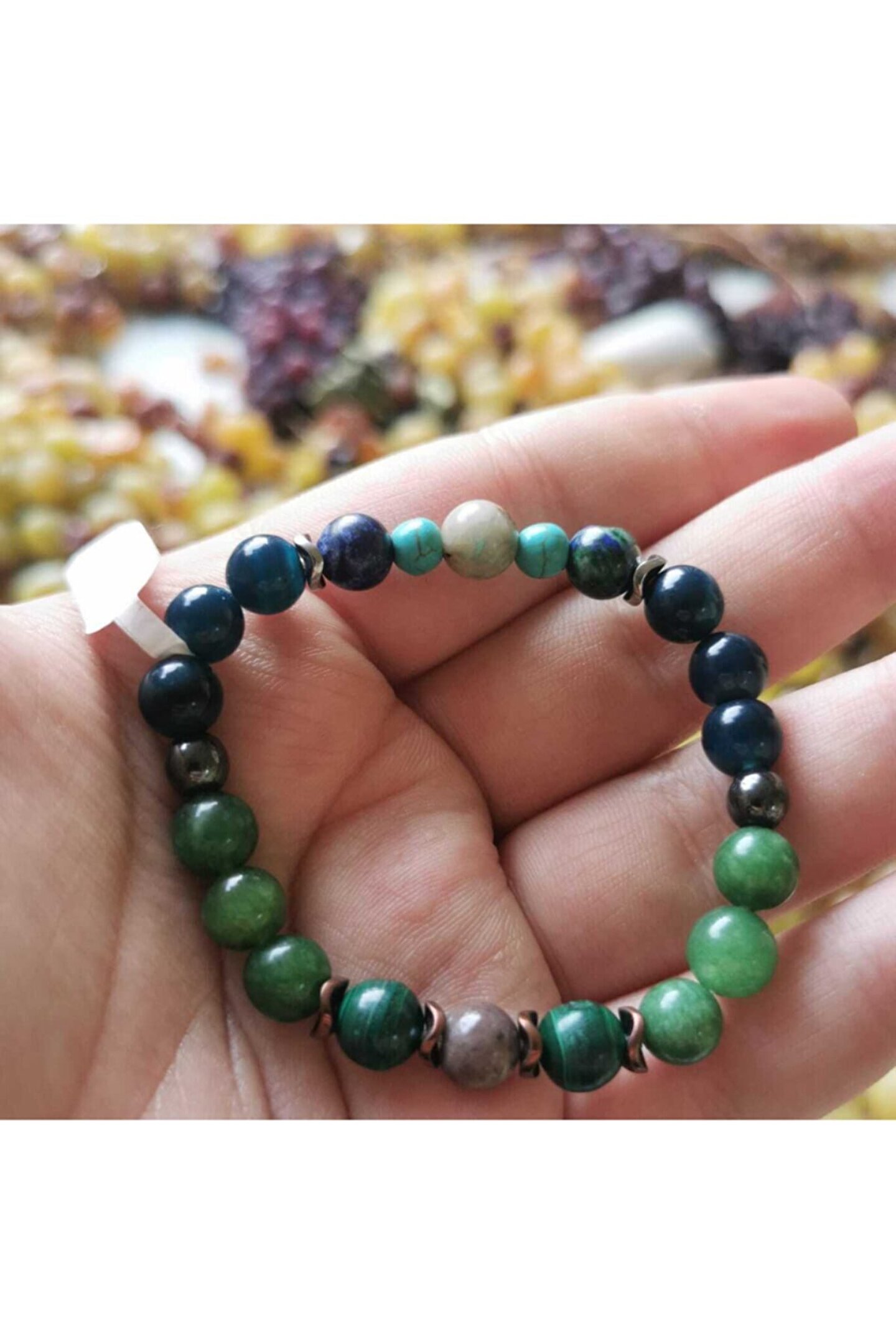 KAM Doğal Taş Takı Boğa Burcu %100 Doğal Taş Bileklik Boğa Burcu Bilekliği, Boğa burcunun özellikleri dikkate alınarak BOĞA burcuna özel olarak seçilmiş taşlar ile oluşturulmuştur %100 doğal taşlar ve doğal malzemeler kullanılarak özel olarak üretilmiştir. Boğa Burcu Taşları; Zümrüt 1, Akik 12, Azurit 2, Malakit( imt) 2, Krizakol 1, Turkuaz (imt) 2. Ürünlerimizin tamamı %100 doğal taşlar ve doğal malzemeler kullanılarak üretilmiştir. (Plastik, tahta, silikon boncuklar kesinlikle kullanılmamıştır.) (Yapay oluşturulmuş taşlar taş içeriğinde belirtilmiştir.)