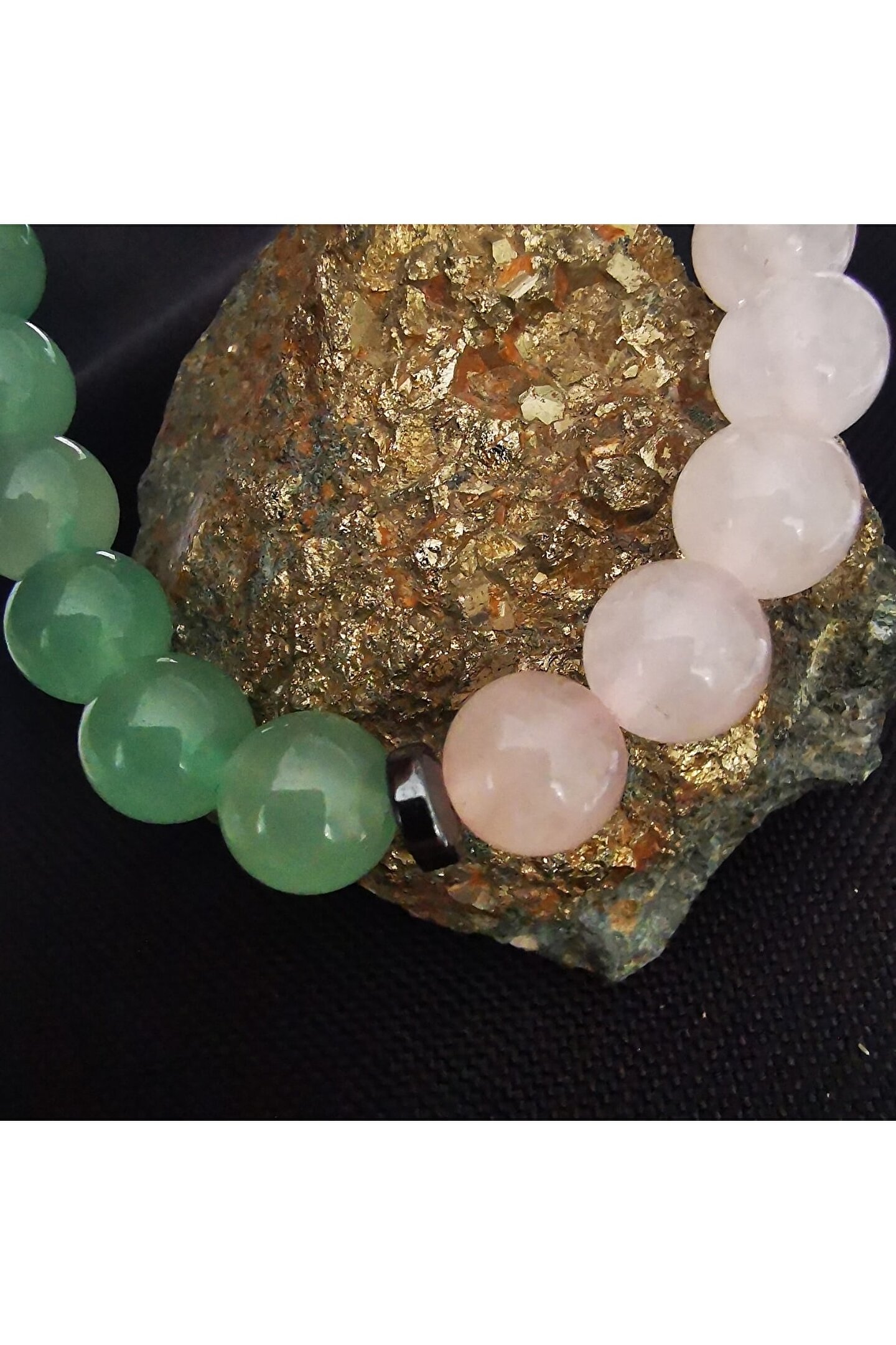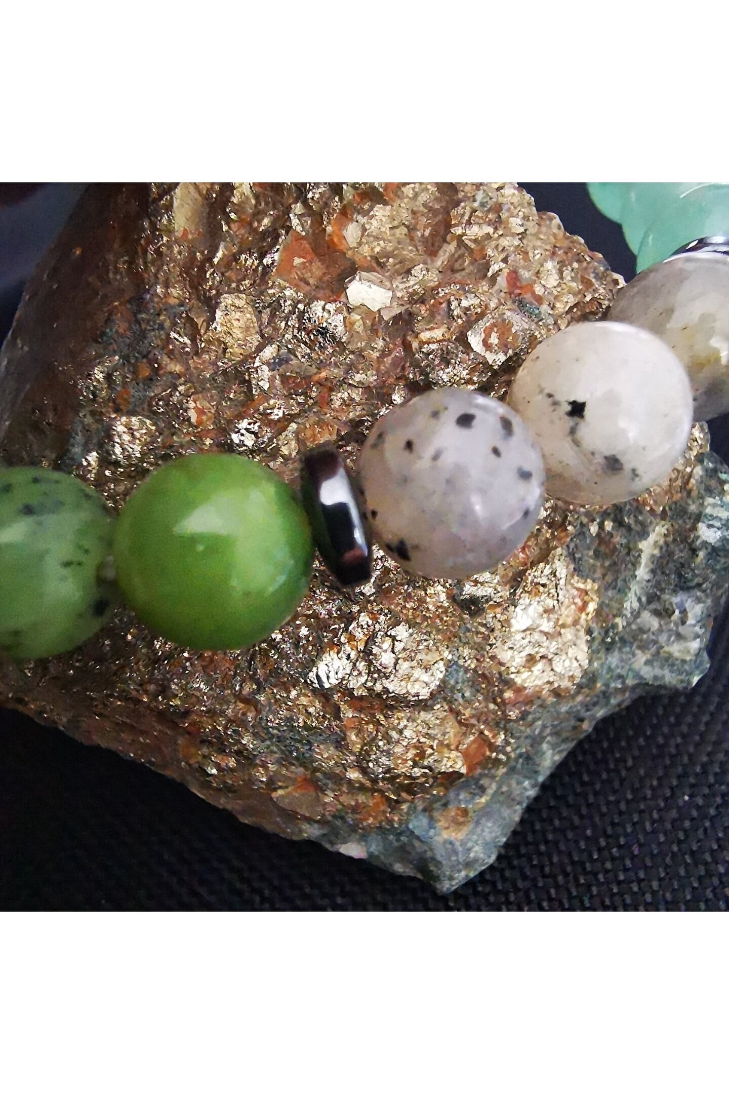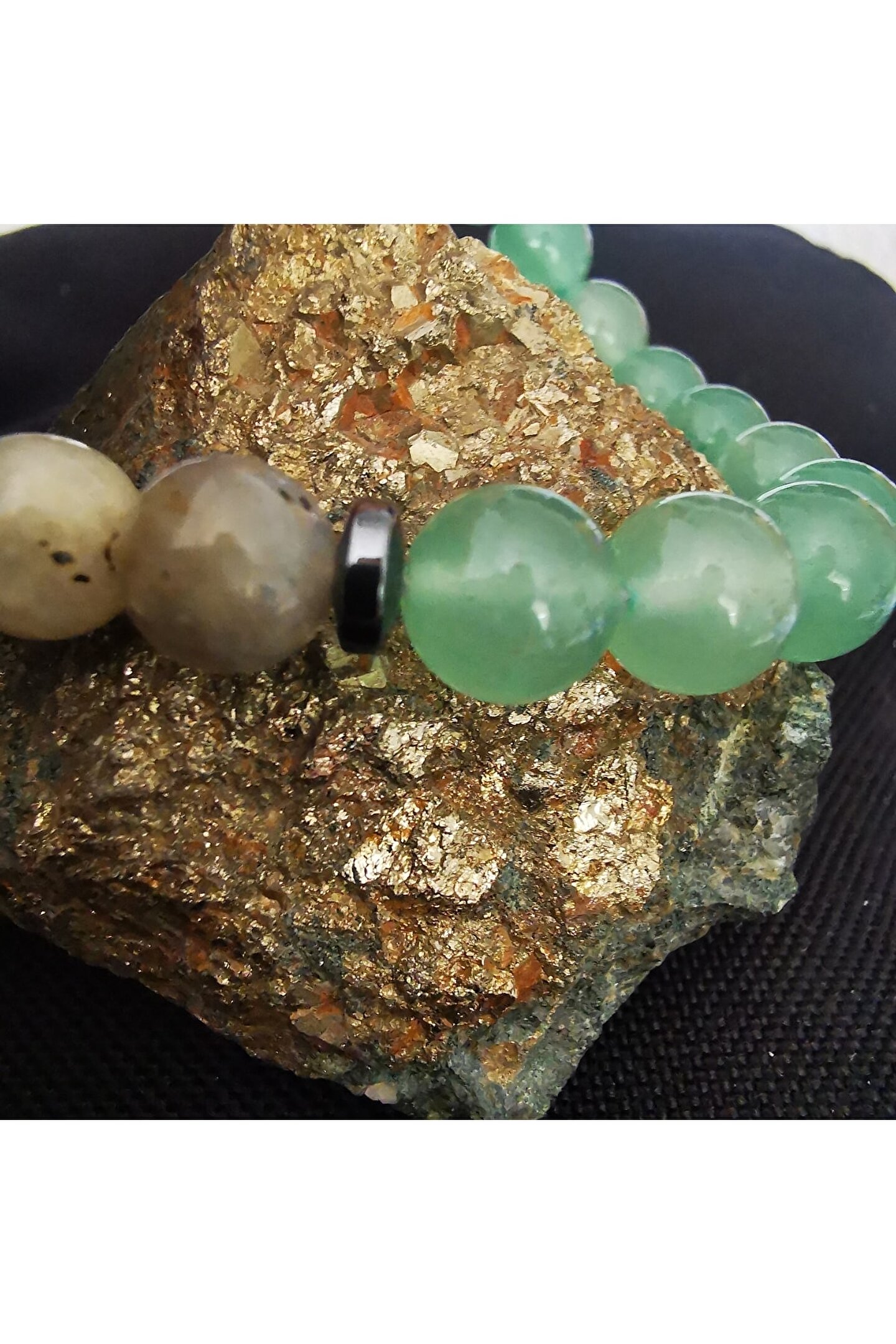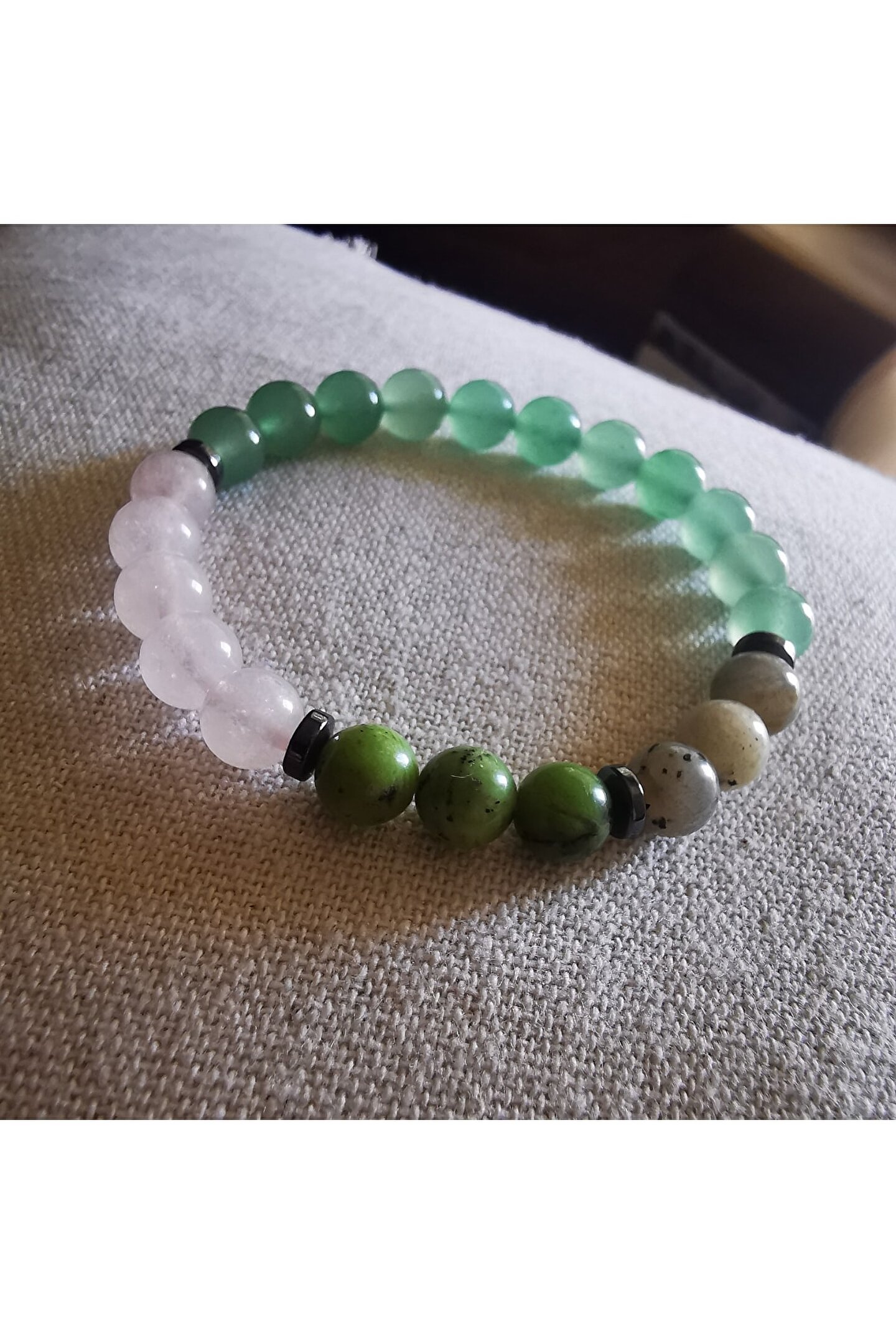Kalp /kanada yeşimi, Aventurin, labradorit, pembe kuvars Doğaltaş bilekliği