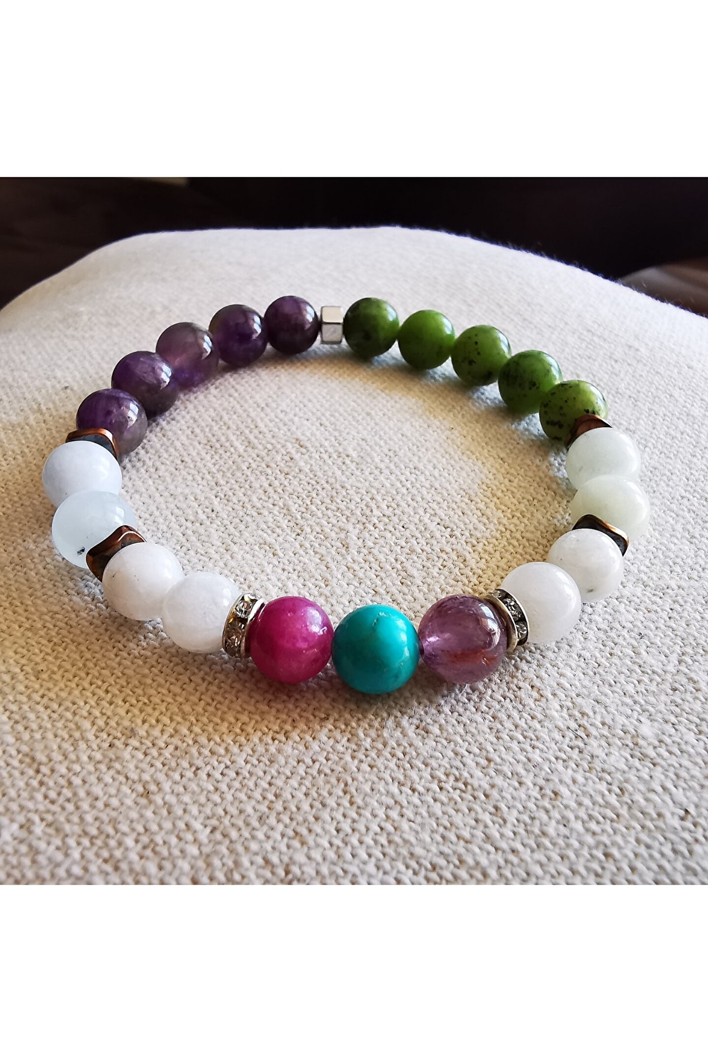 Doğal taş kullanımı sayesinde her bileklik benzersiz ve otantik bir görünüm sunar; Kova burcu bilekliği, Kova burcunun özelliklerini yansıtan tasarımıyla dikkat çeker; Doğal taş materyali ile hem şıklığı hem de doğallığı bir arada sunar;