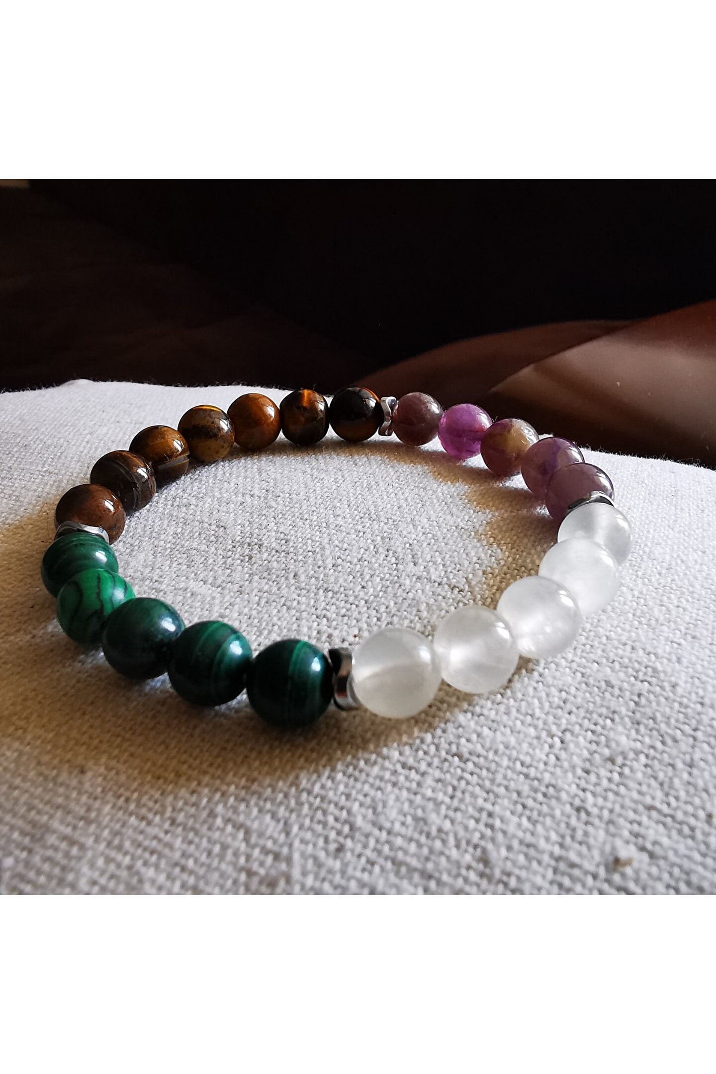Doğal taş kullanımı sayesinde, her bileklik benzersiz ve otantik bir görünüm sunar; Doğal taş materyali ile hem şıklığı hem de doğallığı bir arada yaşatır; Migren ağrılarını hafifletmeye yardımcı olabilecek özel tasarımıyla günlük kullanım için idealdir;