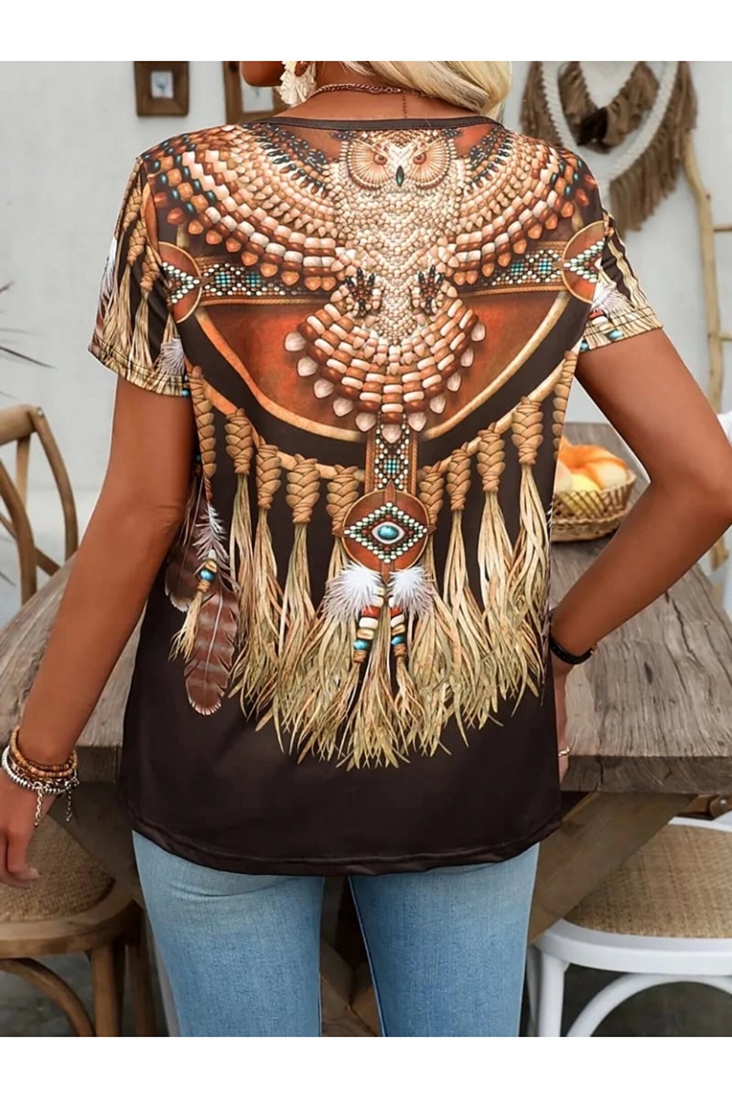 Kaplan Myterrax Kadın Kısa Kollu V Yakalı Kısa Kollu Salaş Desenli Süprem Bluz