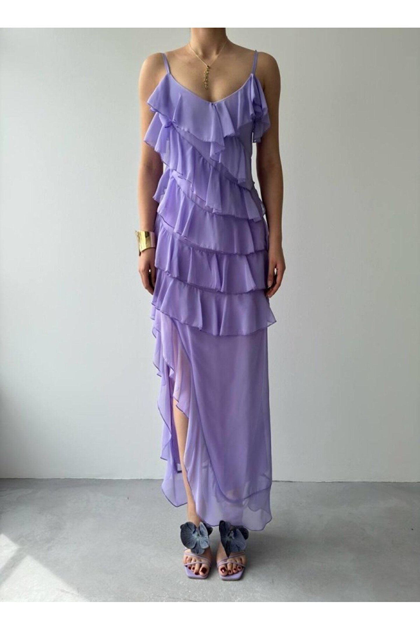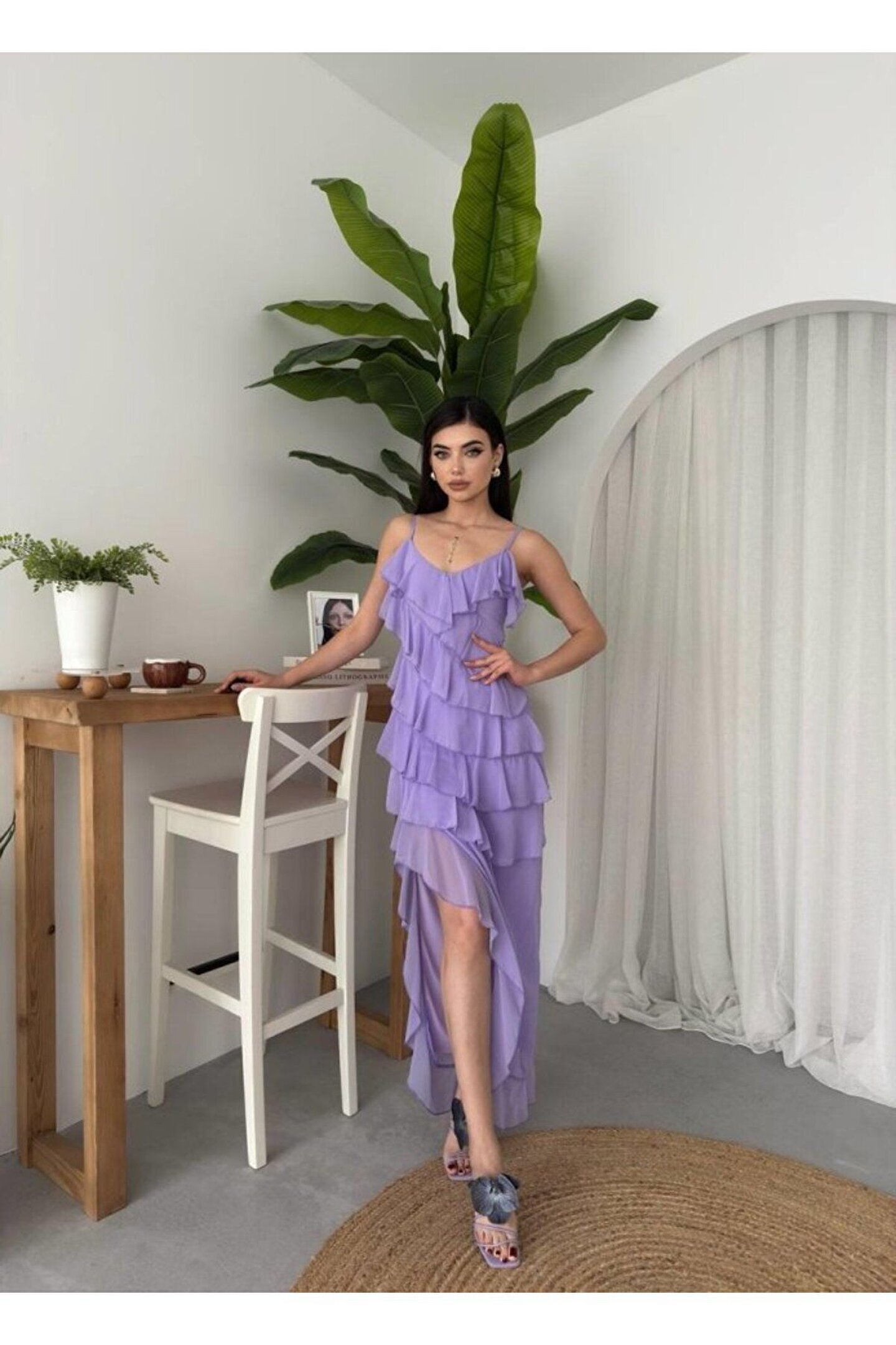 Ples Yırtmaç Detaylı Elbise