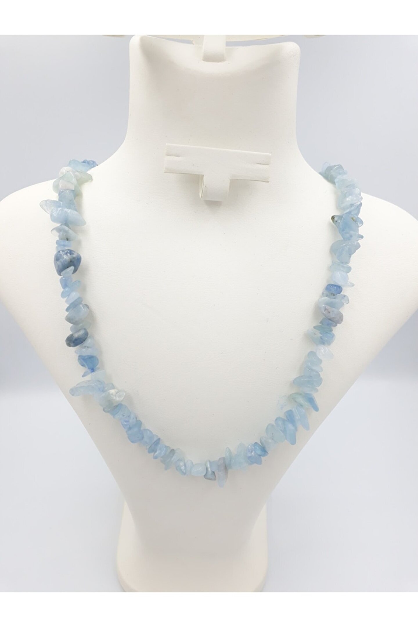 Doğal taş kullanımı sayesinde her kolye benzersiz ve otantik bir görünüm sunar; Akuamarin taşı, mavi renk tonuyla dikkat çeker ve şıklığınızı tamamlayıcı bir aksesuar olarak öne çıkar; 40 cm uzunluğundaki bu kolye, zarif tasarımıyla boynunuza rahatça oturur ve gün boyu konfor sağlar; Taşın kırıktaş yapısı, kolyenin hem modern hem de klasik tarzları bir arada sunarak her türlü kıyafetle uyum sağlar;