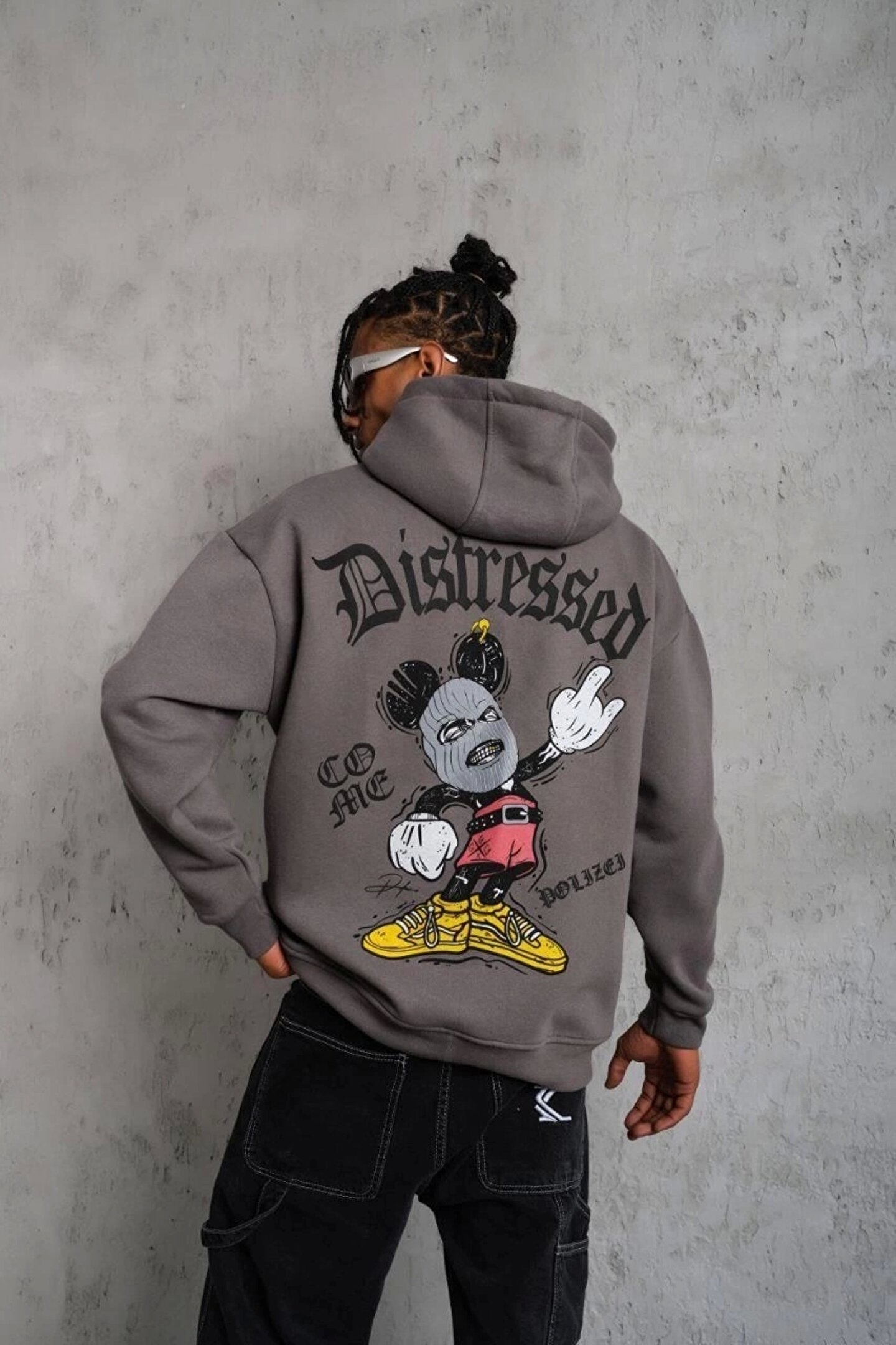 Erkek Üç İplik Baskılı Kapüşonlu Sweat - Gri