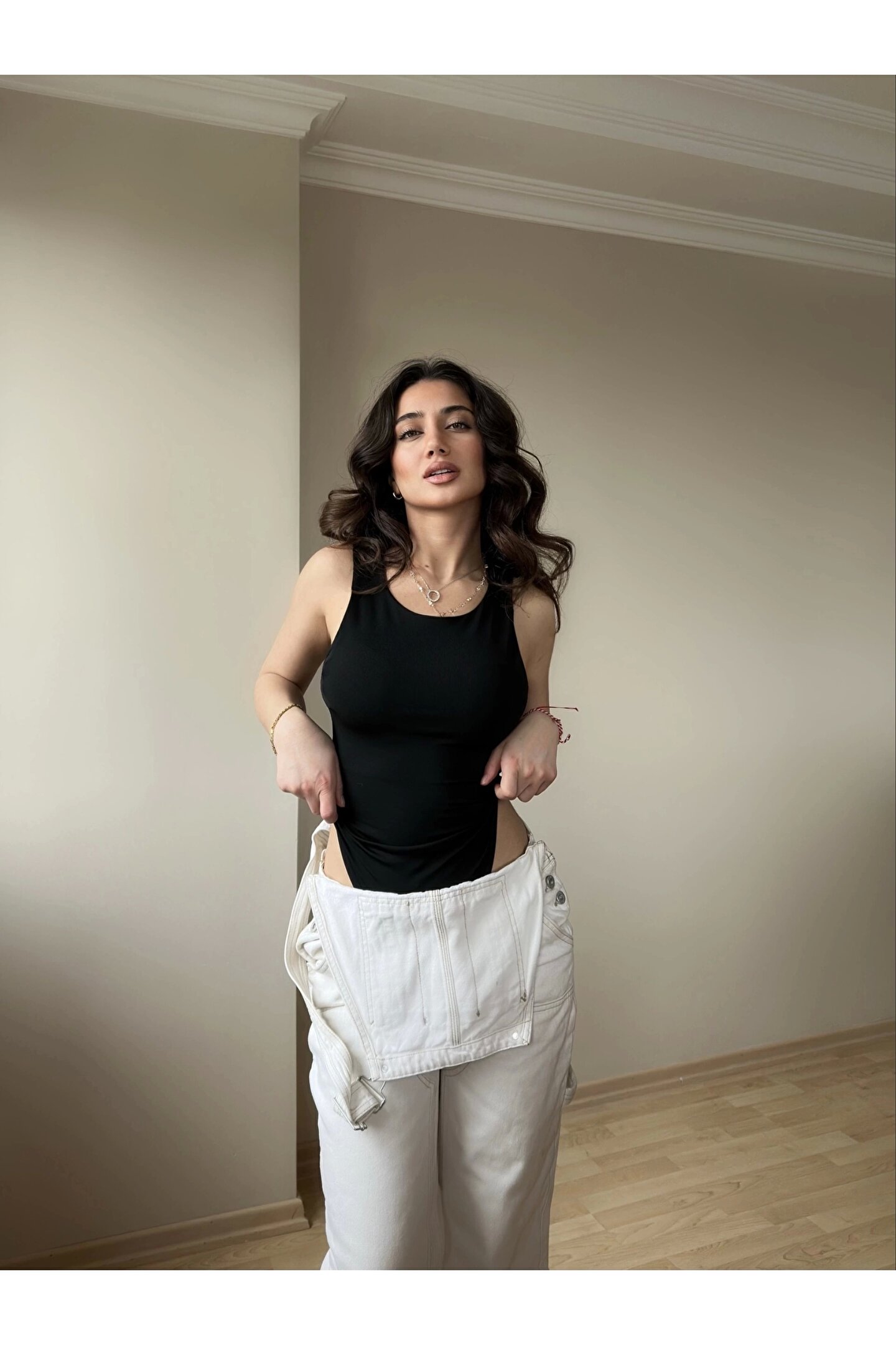 KarşıVitrin Halter Yaka Siyah Bodysuit