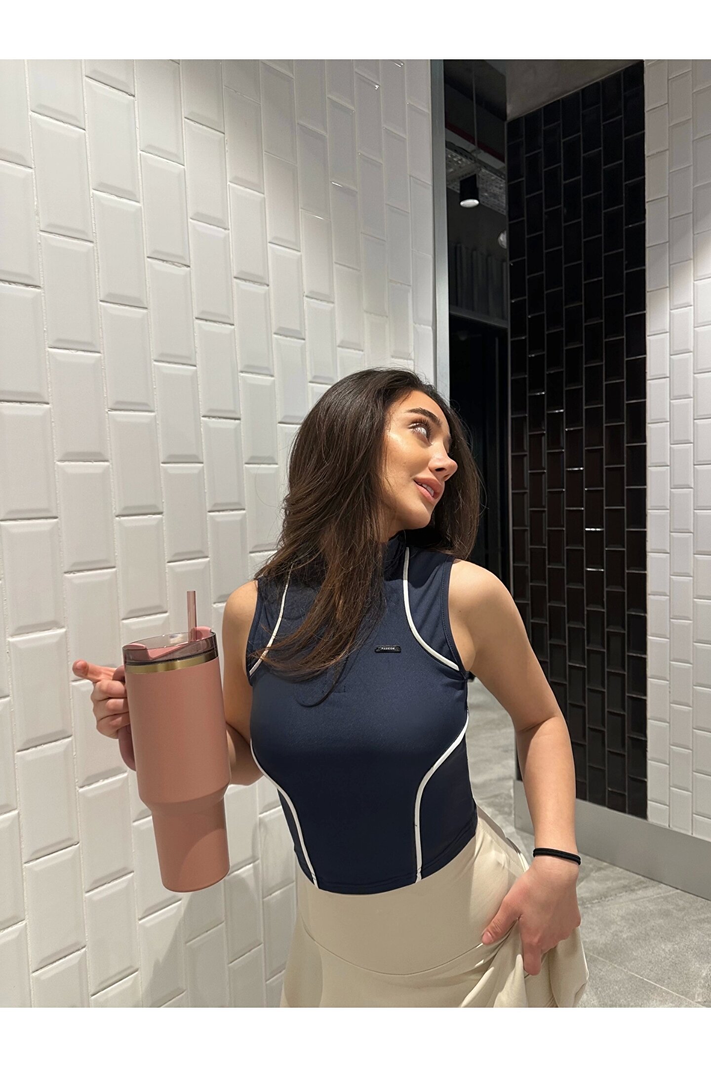 KarşıVitrin Lacivert Fermuarlı Bilyeli Bluz