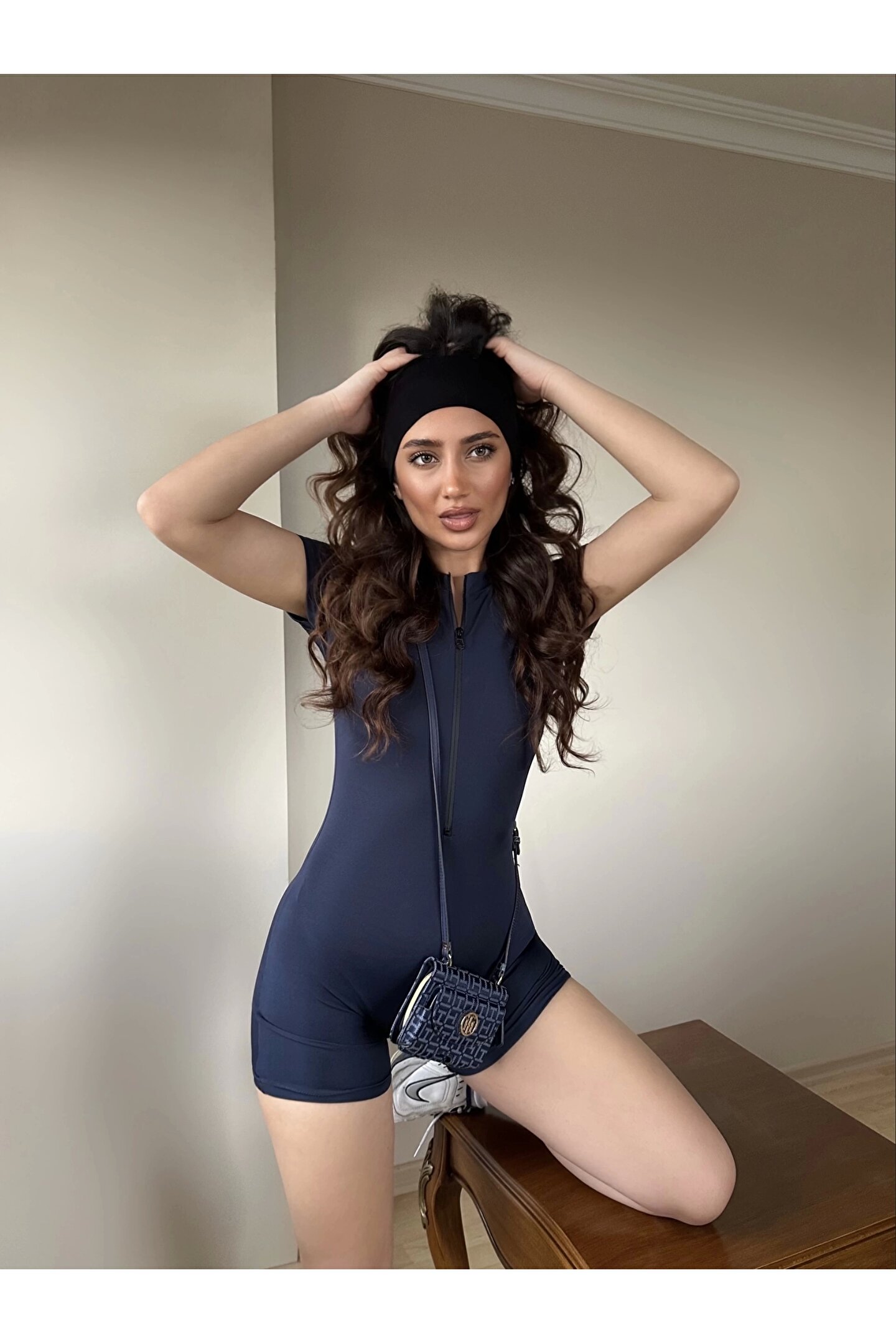 KarşıVitrin Lacivert Fermuarlı Şort Tulum
