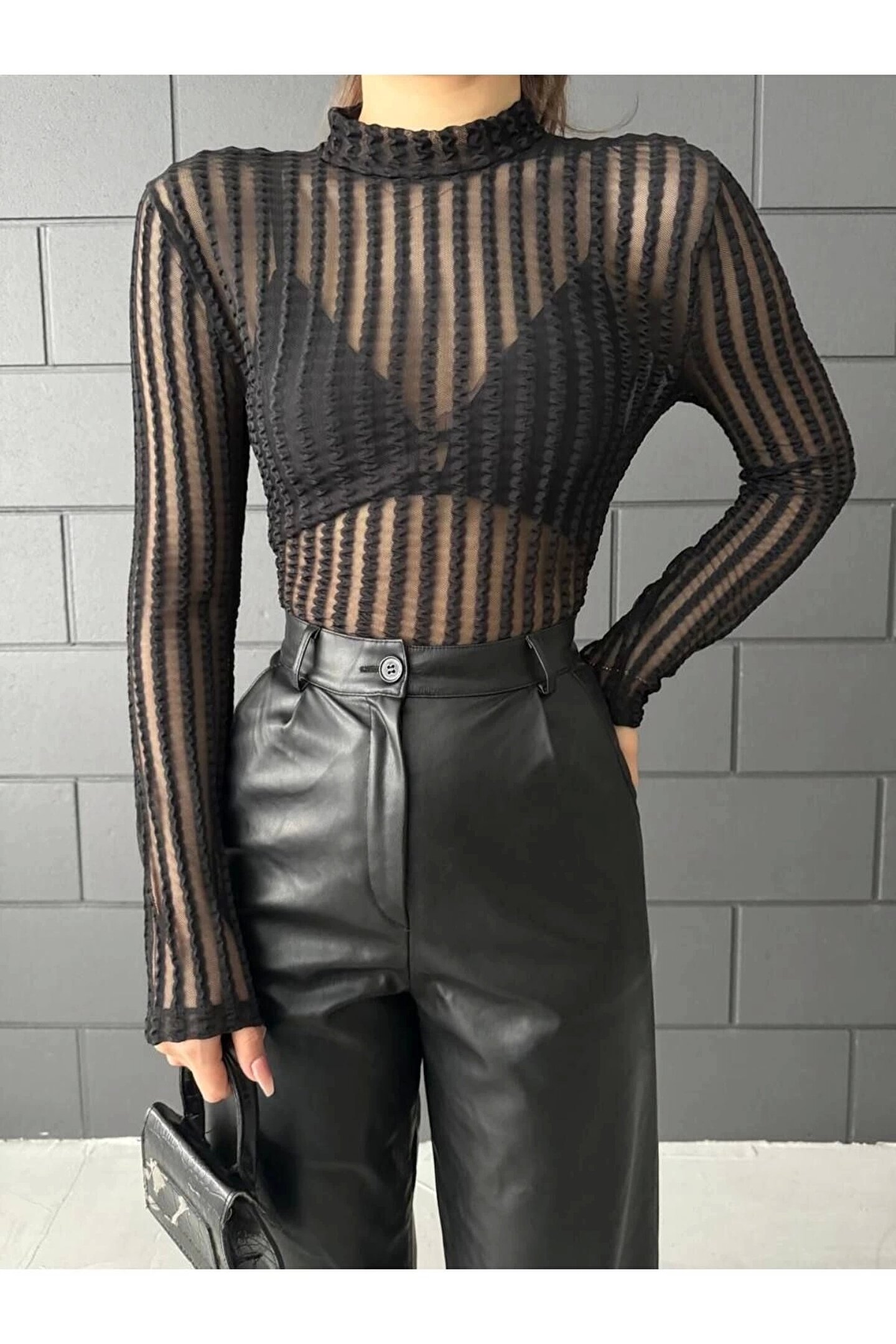 Siyah Tül Detay Transparan Bluz