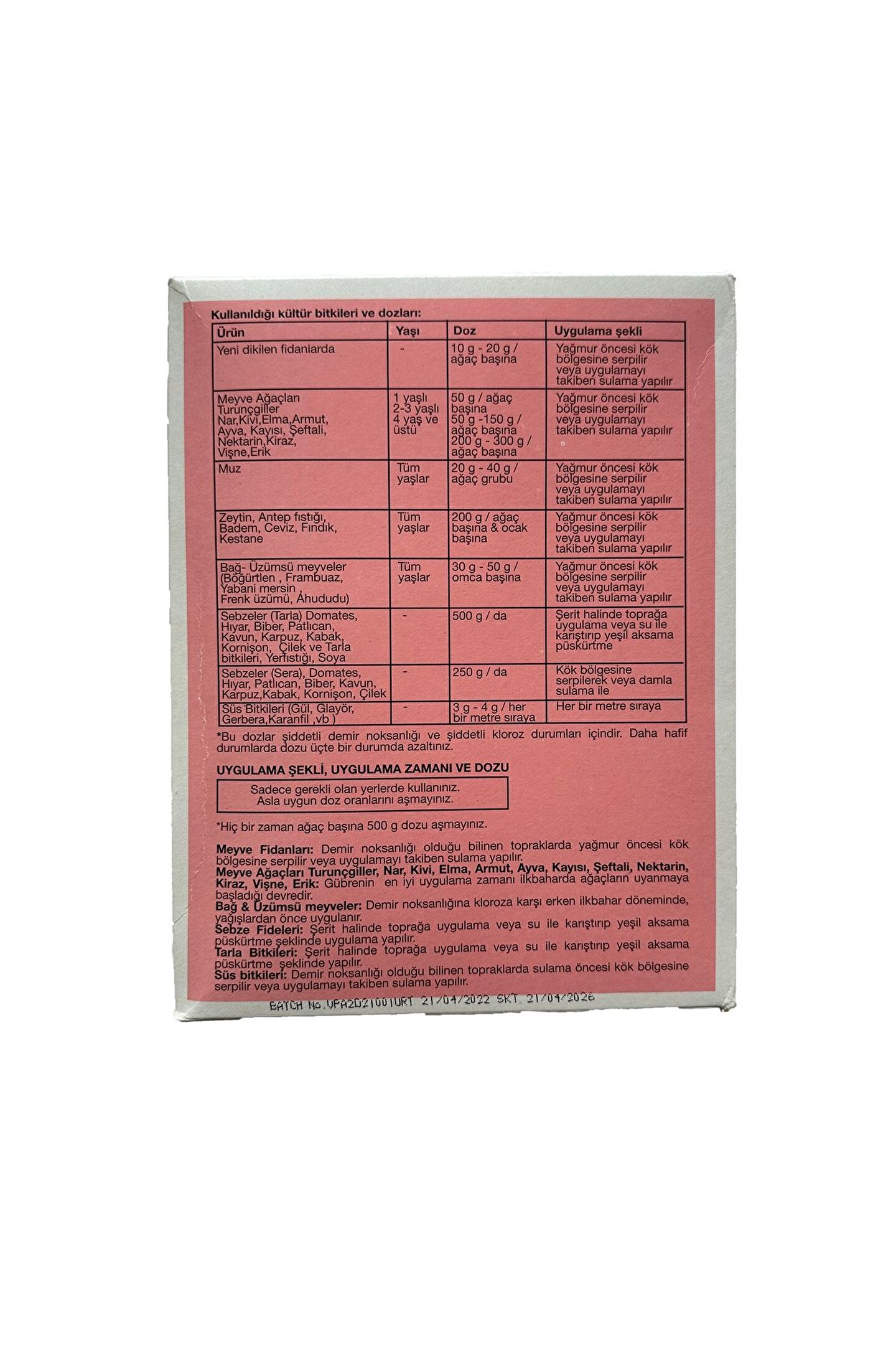 Granüllü formülü sayesinde, bitkilerin kök sistemine kolayca nüfuz eder ve hızlı emilim sağlar; 1 kg'lık ambalajı ile ekonomik ve pratik kullanım sunar; Suda çözünür yapısı, bitkilerin ihtiyaç duyduğu besin maddelerini doğrudan köklerine ulaştırarak verimliliği artırır; Demir içeriği ile bitkilerin yaprak ve kök gelişimini destekler, sağlıklı ve güçlü büyümelerine katkıda bulunur;