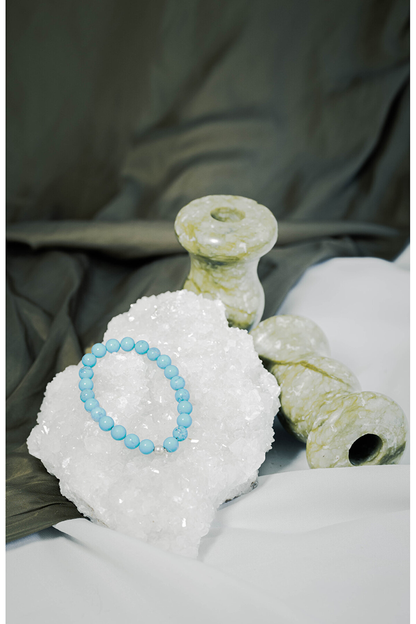 Doğal taş kullanımı sayesinde her bileklik benzersiz ve otantik bir görünüm sunar; Turkuaz (firuze taşı) kullanımı, bilekliğe zarif bir mavi tonu katar ve göz alıcı bir parlaklık sağlar; Doğal taş materyali ile hem şıklığı hem de doğallığı bir arada sunar, günlük kullanım için idealdir; Bileklik, el yapımı olmasıyla dikkat çeker ve her bir bileklik farklı detaylarla öne çıkar;