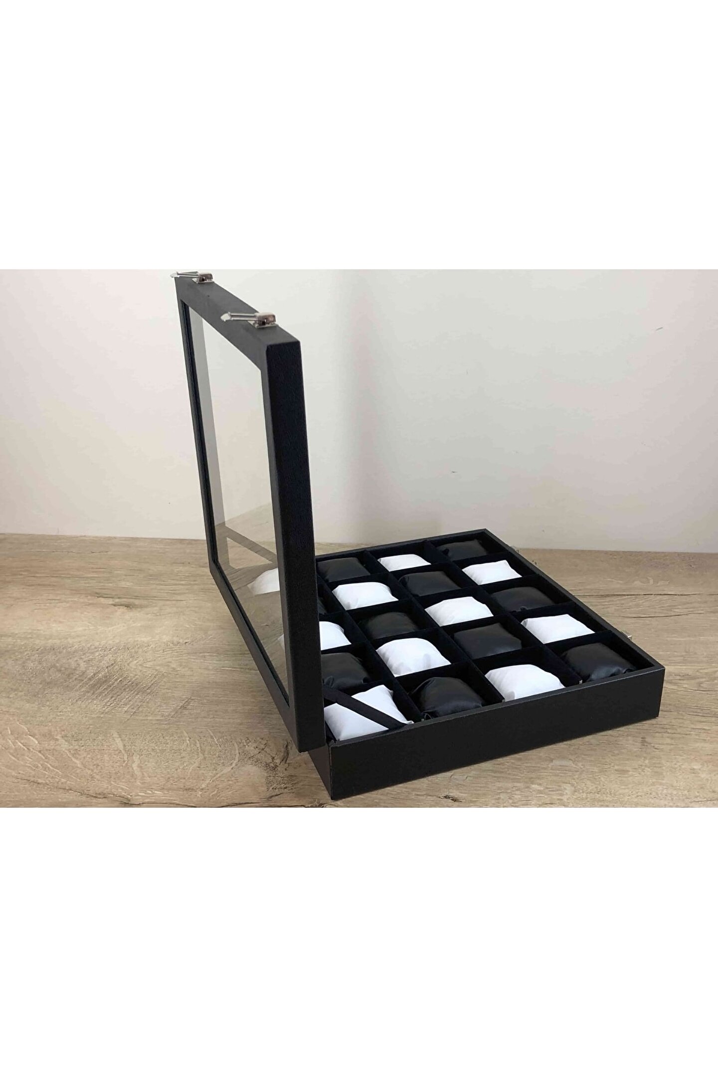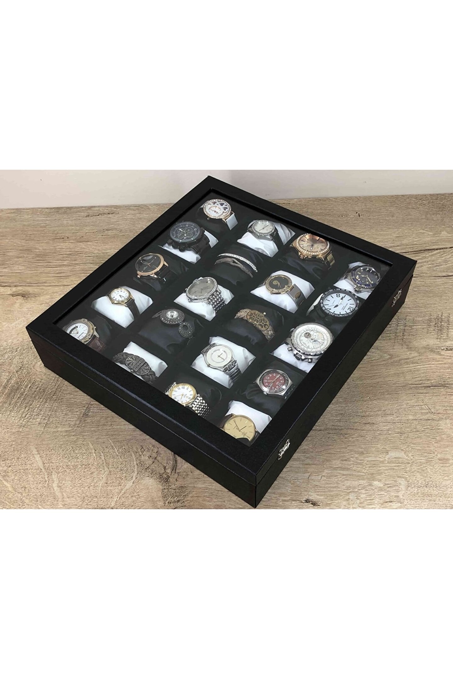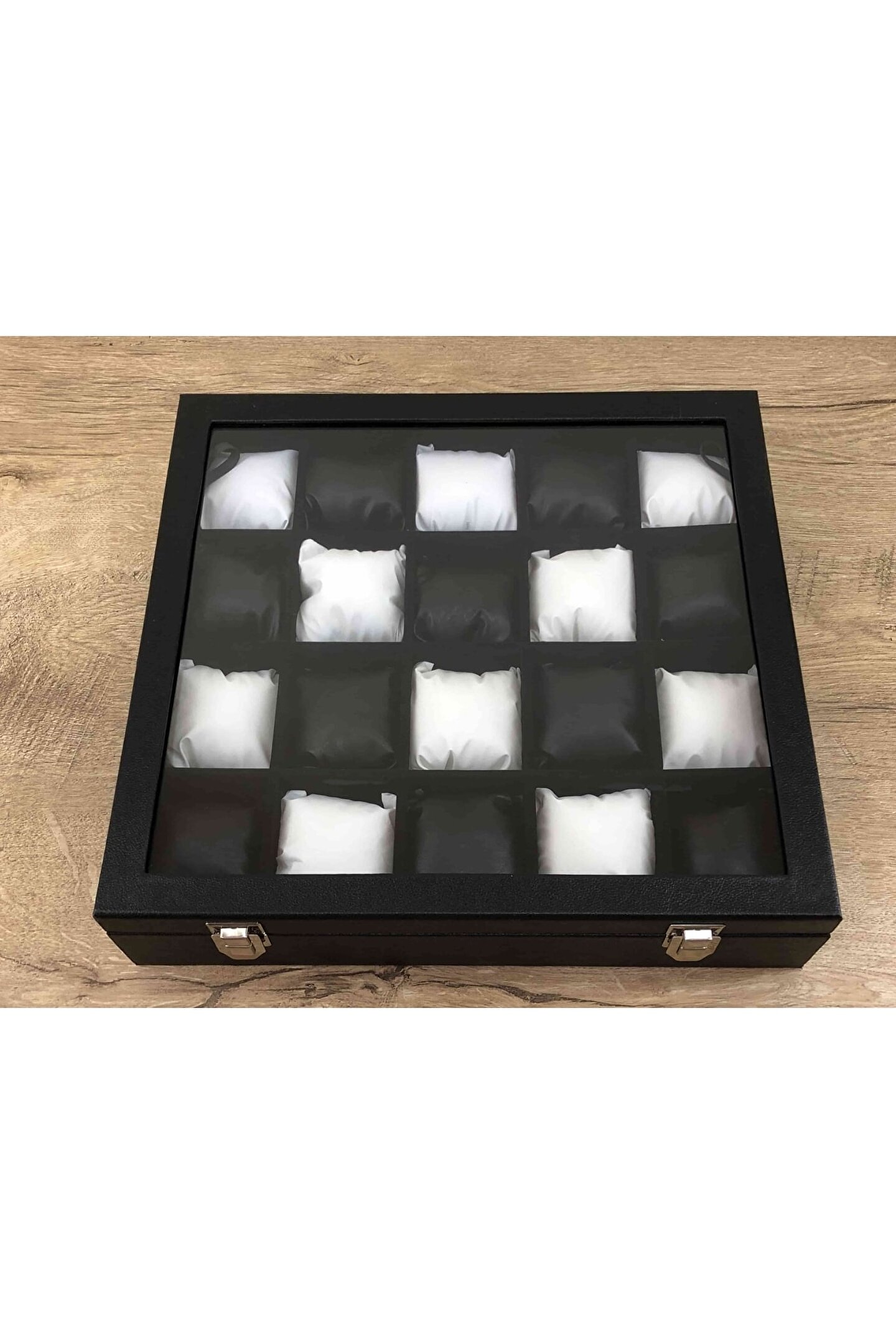 - Ahşap malzeme üzerine deri kaplama ile zenginleştirilmiş, şık ve dayanıklı bir tasarıma sahip; - İç kısmında kadife dokusuyla lüks bir görünüm sunan yastıklama özelliği; - 20 gözlü yapısı sayesinde saatleriniz, takılarınız ve diğer değerli eşyalarınız için geniş saklama alanı sağlar; - Siyah ve beyaz renk kombinasyonu ile modern ve zarif bir dekoratif kutu alternatifi sunar;