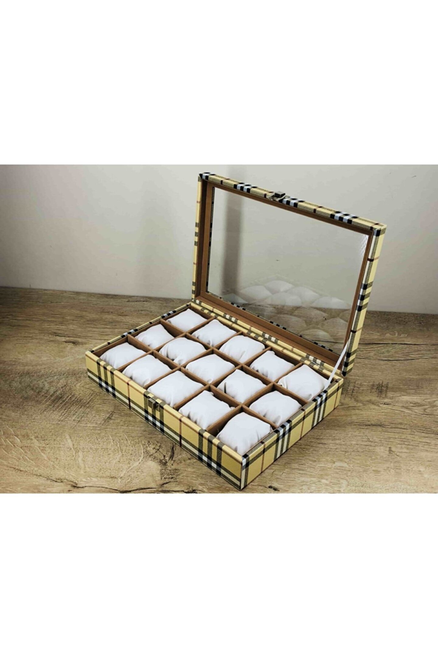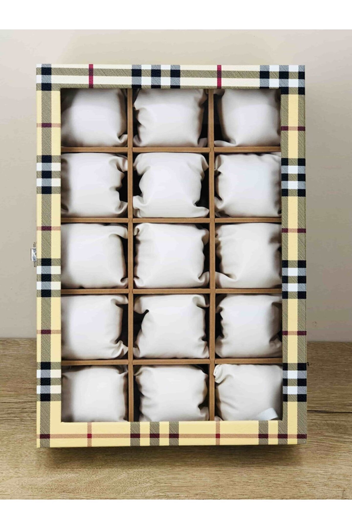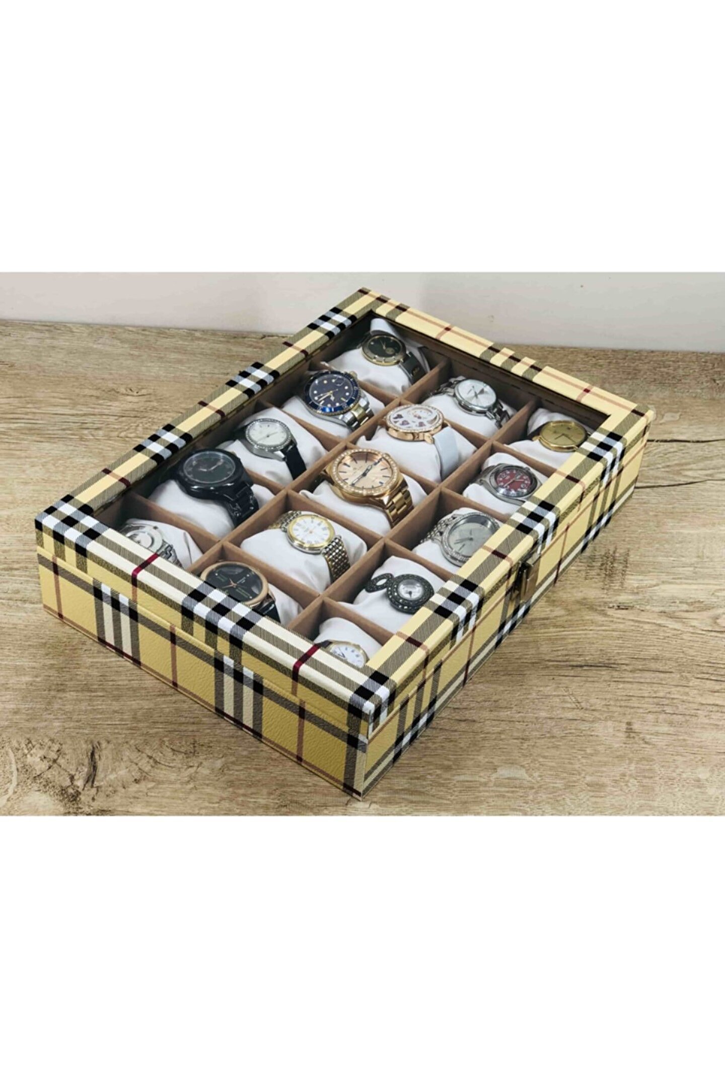 Kelepir Fırsatlar Ekoseli Sarı Yerli El İşi Üretim Büyük Boy Kol Saatleri İçin Takı Kolye Saat Kutusu