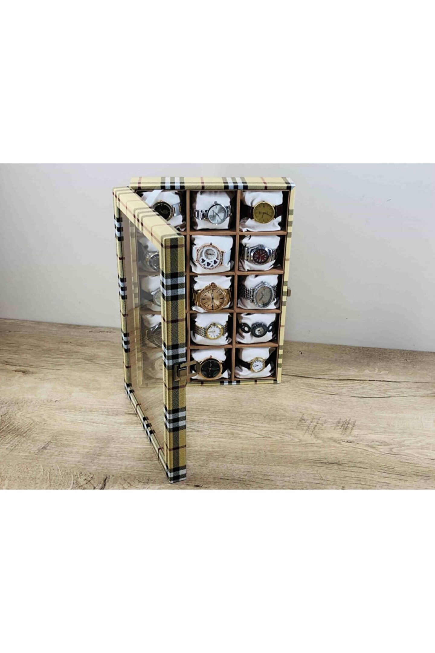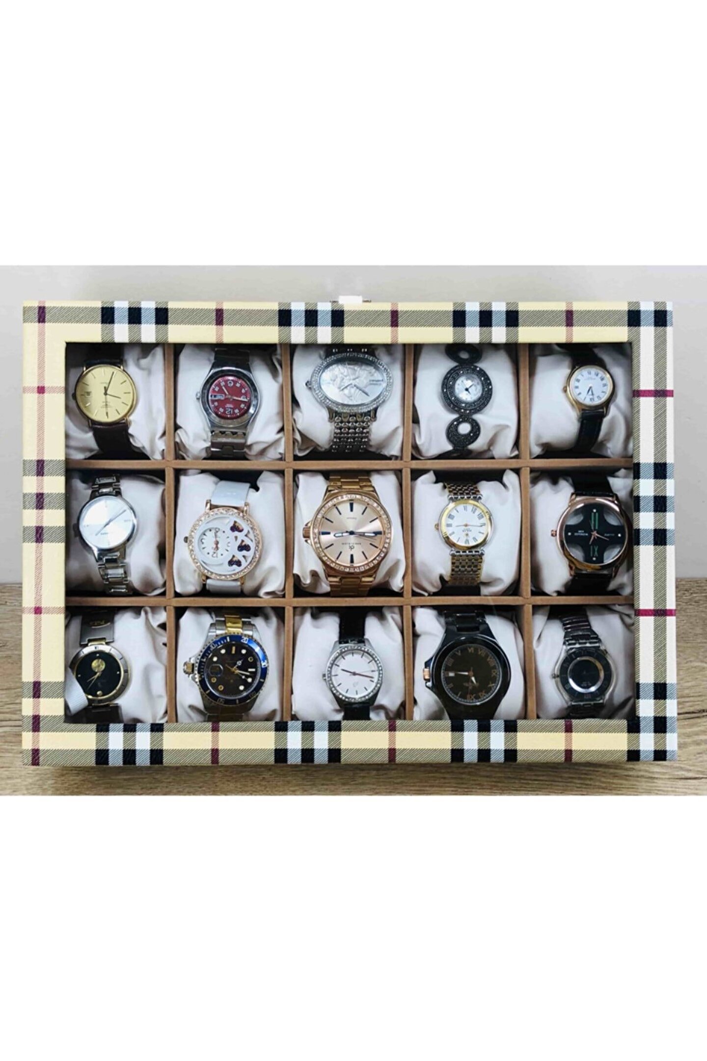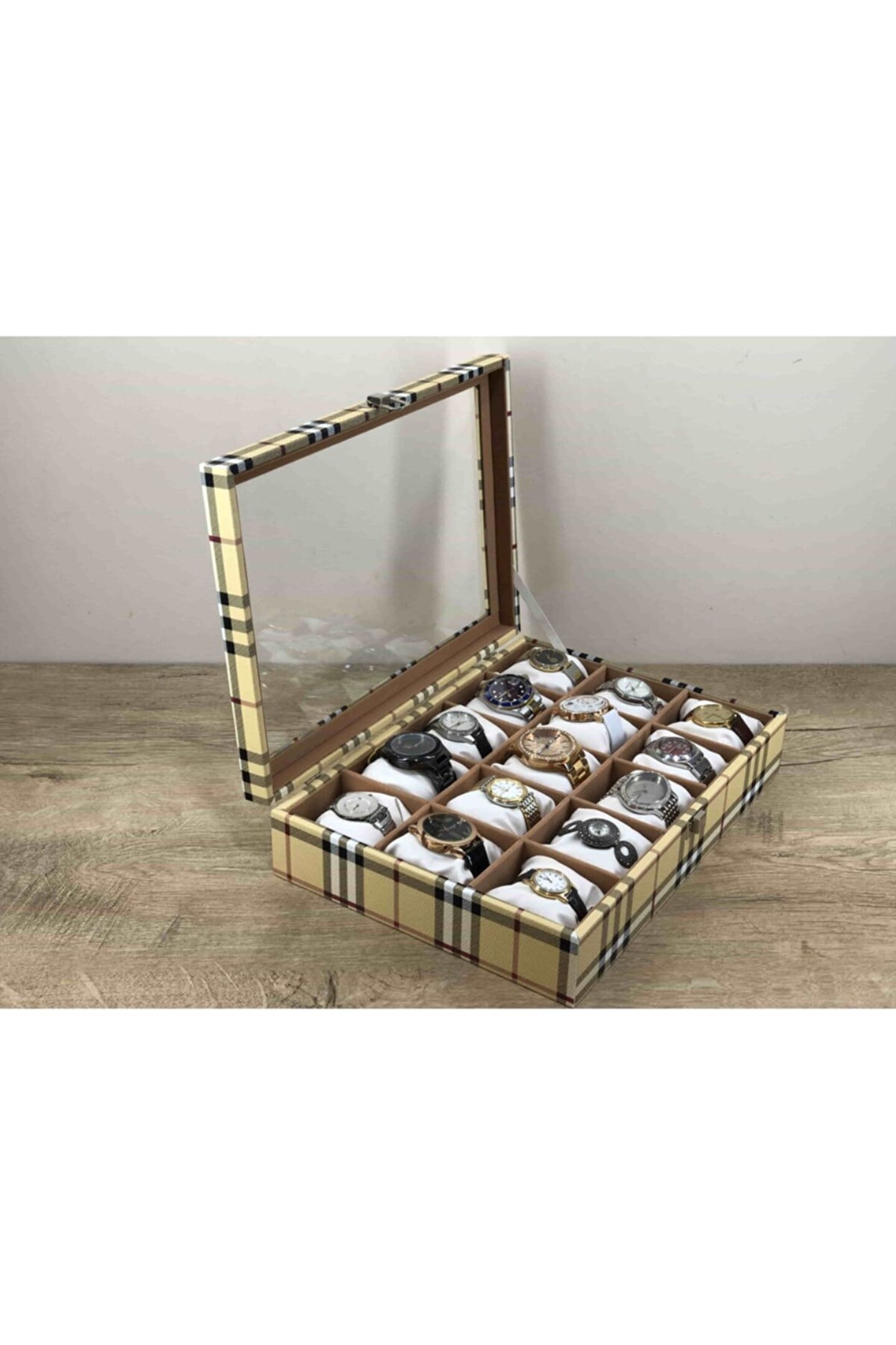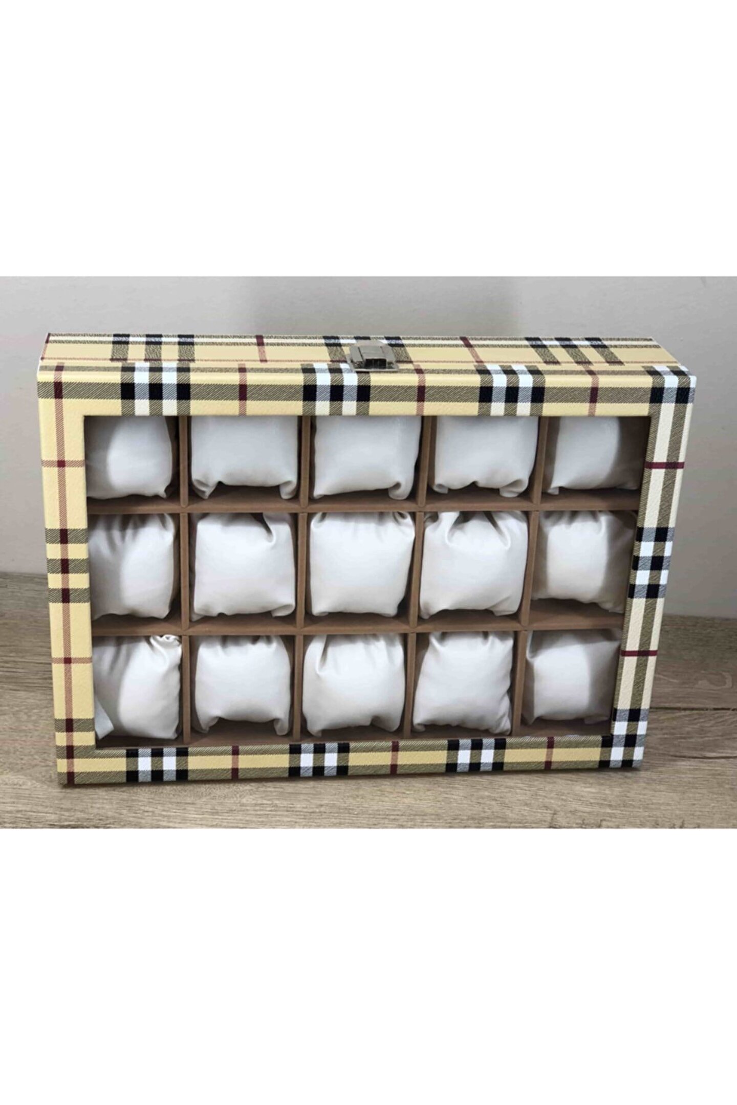 Kelepir Fırsatlar Ekoseli Sarı Yerli El İşi Üretim Büyük Boy Kol Saatleri İçin Takı Kolye Saat Kutusu