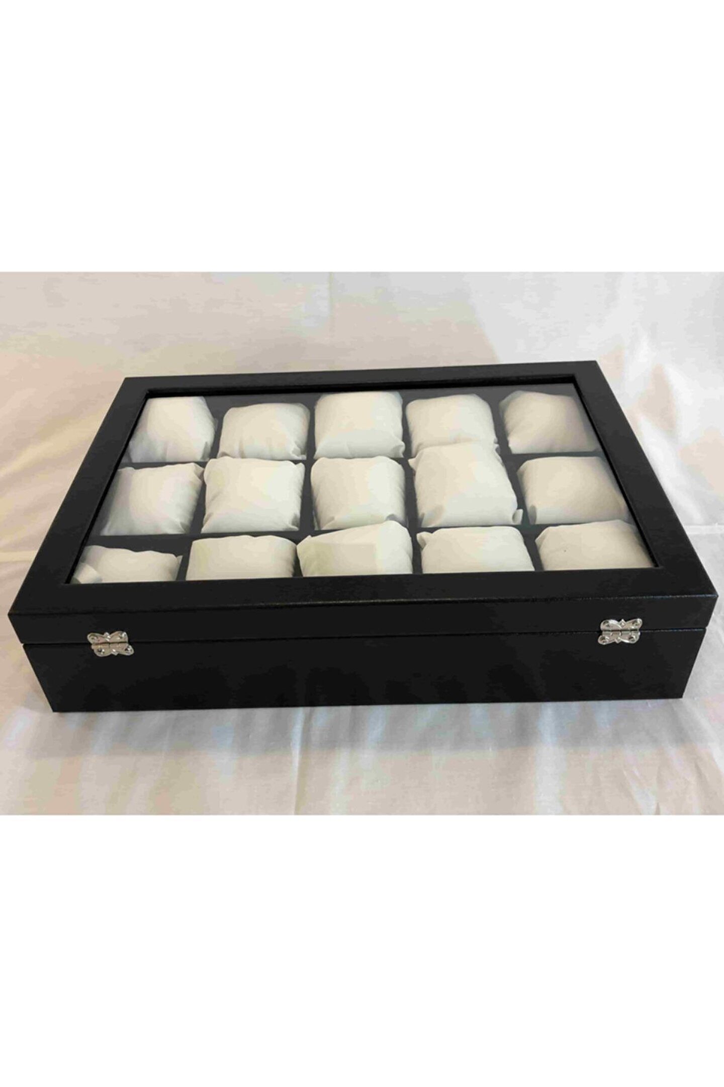 Kol Saati Koleksiyonu Için 15 Bölmeli Cam Kapaklı Deri Kaplı Saat Kutusu