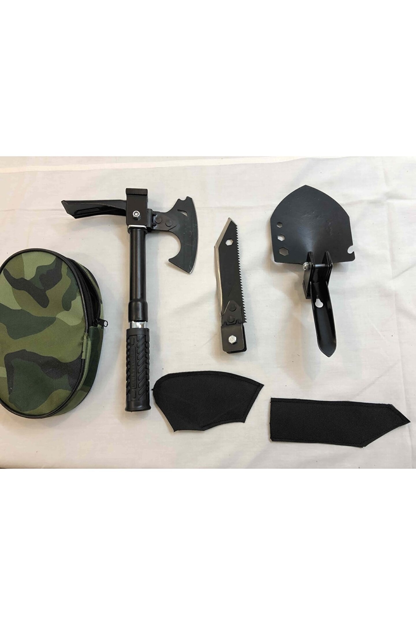 Kelepir Fırsatlar Süper Pratik Sökülüp Katlanan Minik Askeri Çelik Balta Çekiç Çapa Bıçak Testere Seti Haki Çantalı