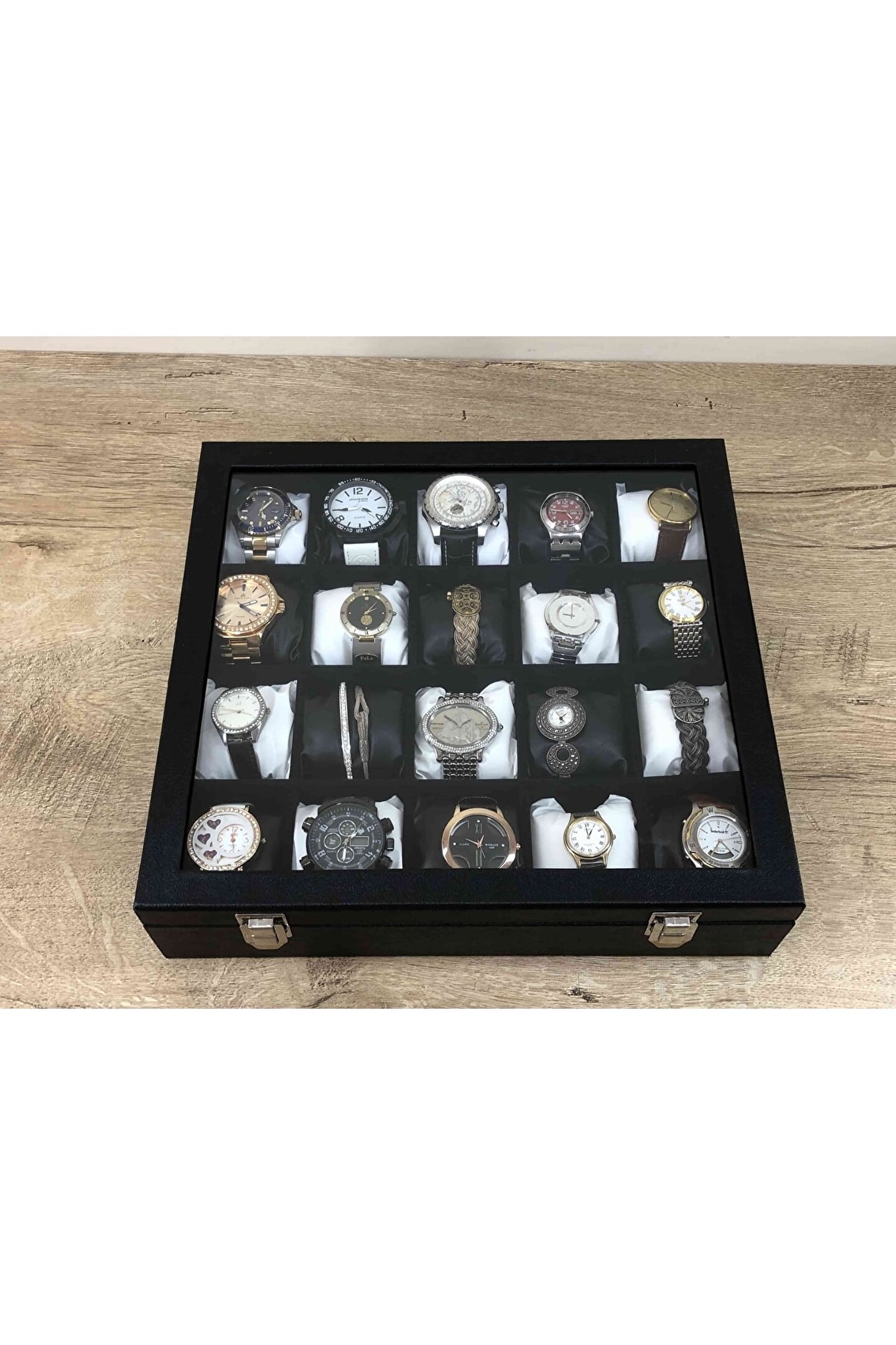 - Yerli üretim deri kaplama, dayanıklılığı ve şık görünümü ile dikkat çeker; - 20 farklı saat alabilme kapasitesiyle, koleksiyonunuzu düzenli ve korunaklı bir şekilde saklamanızı sağlar; - Kolay erişim için tasarlanmış kilitli kapak, değerli eşyalarınızın güvenliğini artırır; - Dekoratif tasarımı ile ev veya ofis dekorasyonunuza estetik bir dokunuş ekler;