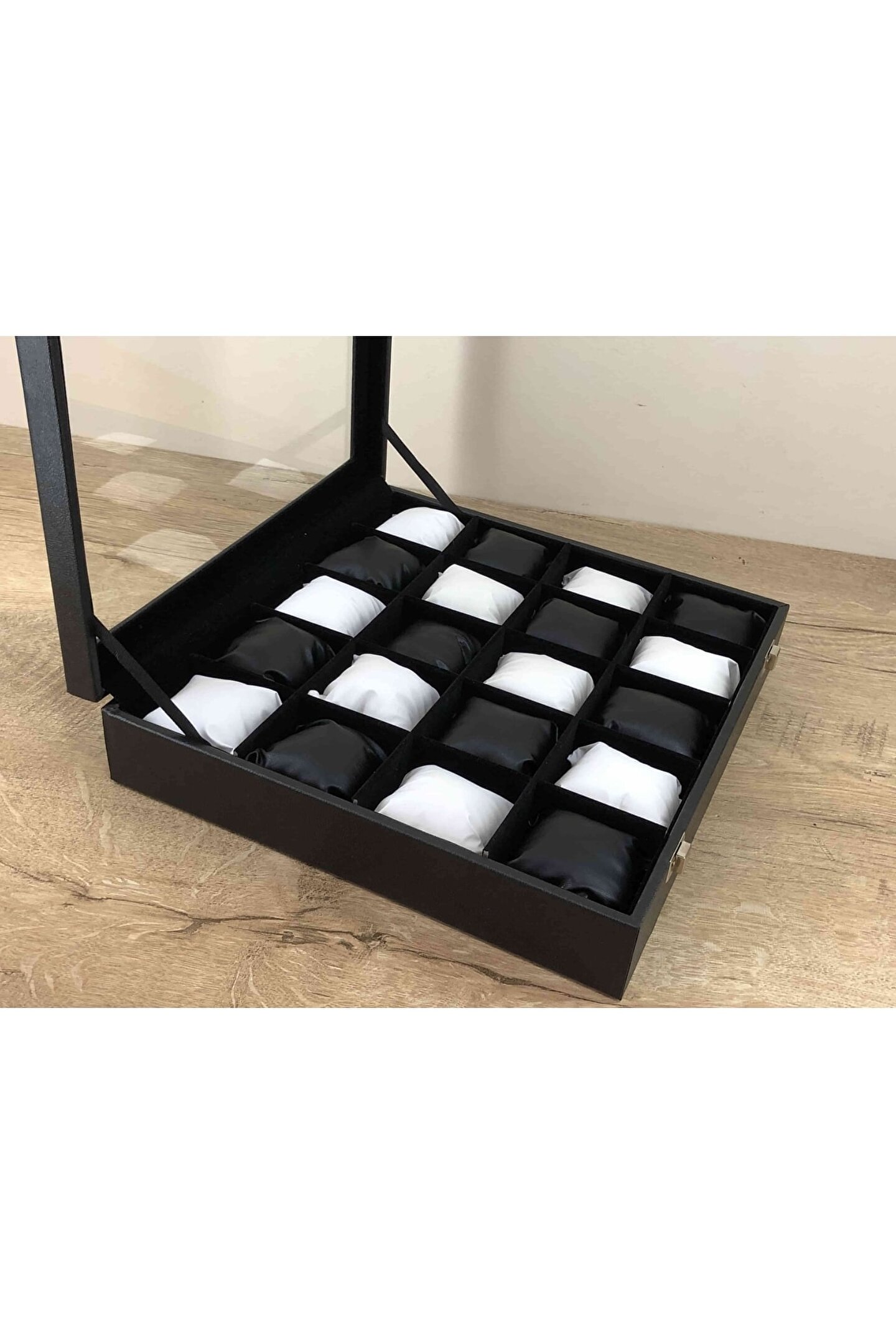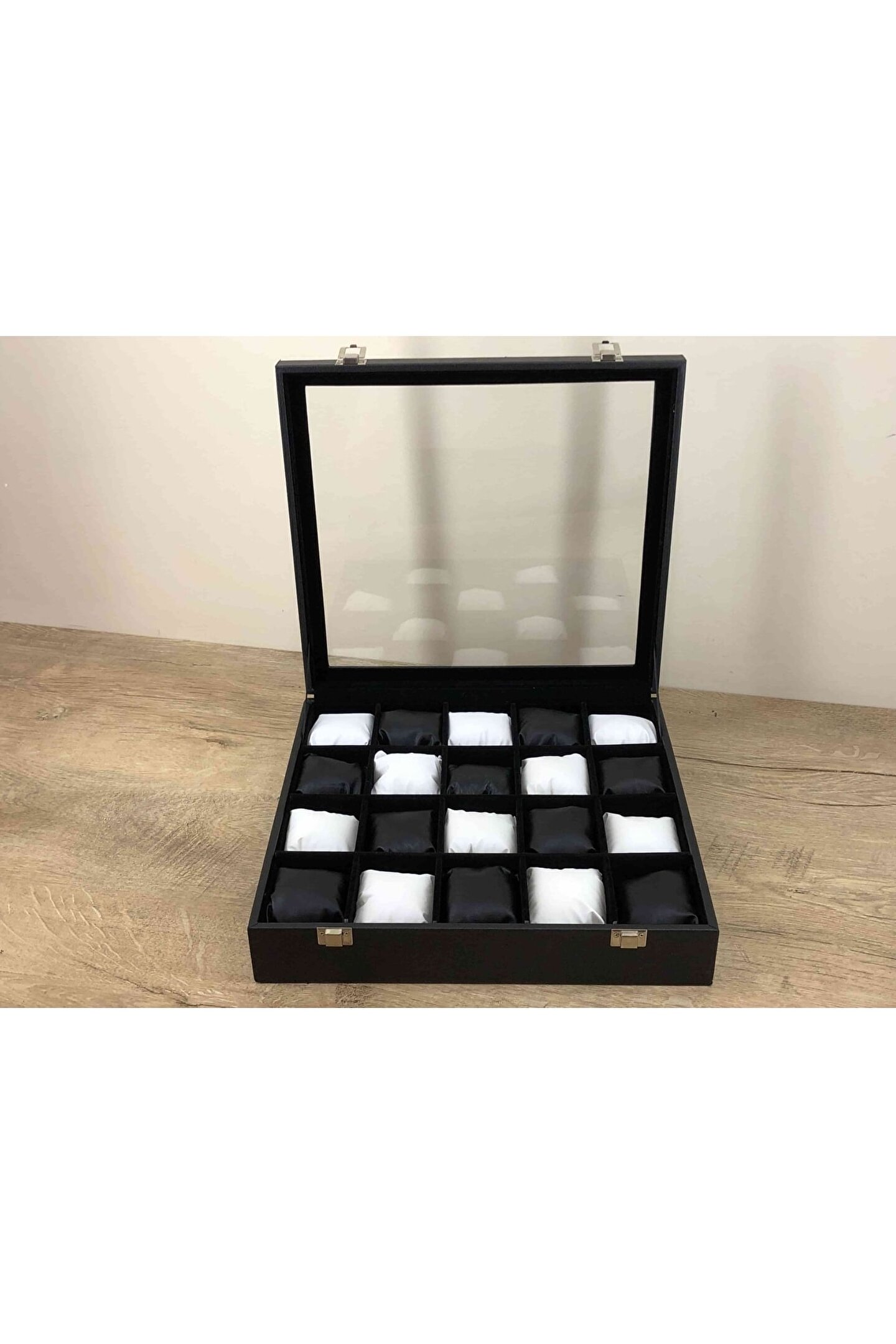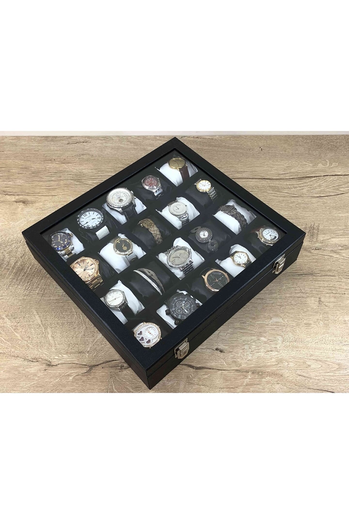 - Yerli üretim deri kaplama, dayanıklılığı ve şık görünümü ile dikkat çeker; - 20 farklı saat alabilme kapasitesiyle, koleksiyonunuzu düzenli ve korunaklı bir şekilde saklamanızı sağlar; - Kolay erişim için tasarlanmış kilitli kapak, değerli eşyalarınızın güvenliğini artırır; - Dekoratif tasarımı ile ev veya ofis dekorasyonunuza estetik bir dokunuş ekler;