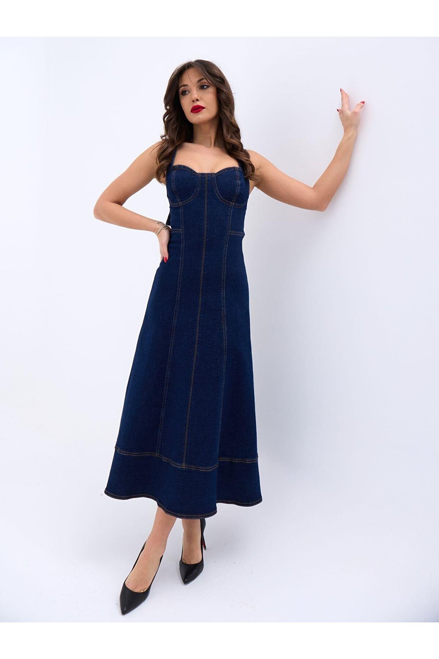 kendim fashion 7090 KOT ELBİSE-MAVİ