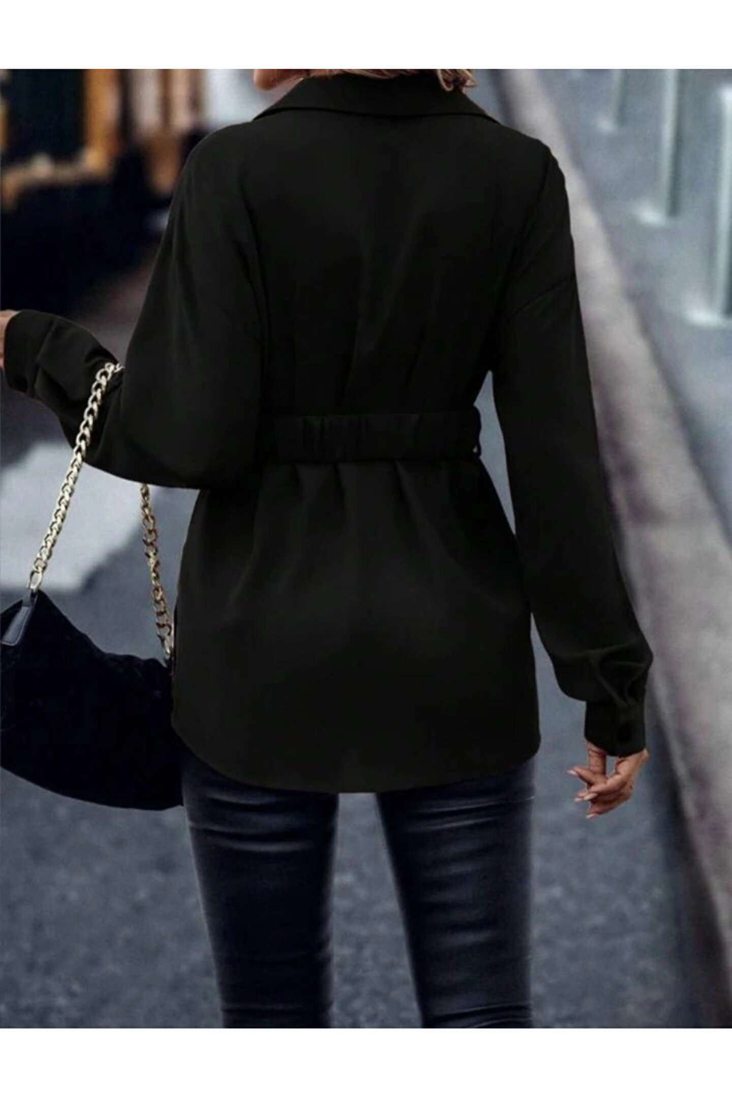 KentselBazaar Kadın Uzun Kollu Yakalı önden Düğmeli Belden Kemerli Ithal Krep Bluz
